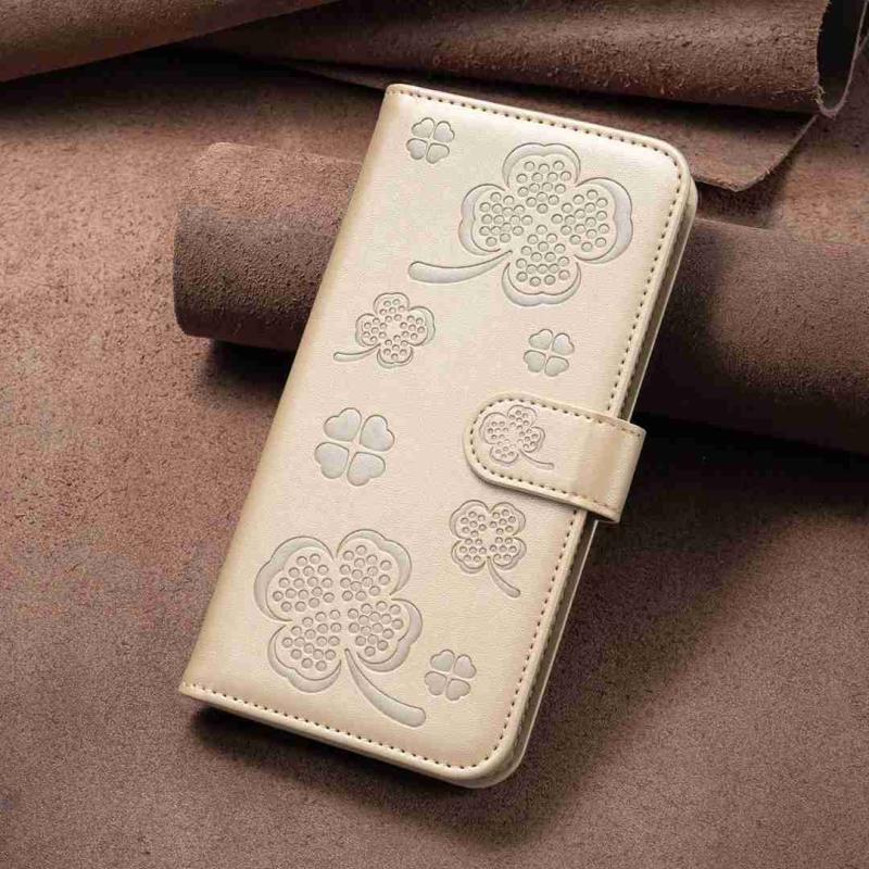 For OPPO A7 Four-leaf Embossed Leather Phone Case(Gold)