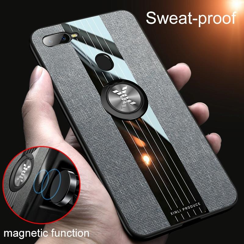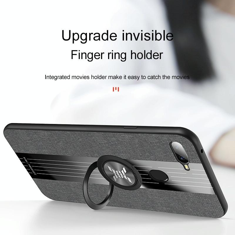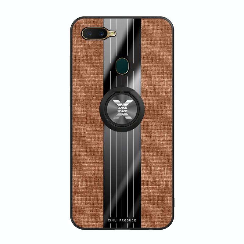 For OPPO A7 XINLI Stitching Cloth Textue Shockproof TPU Protective Case with Ring Holder(Brown) (XINLI)