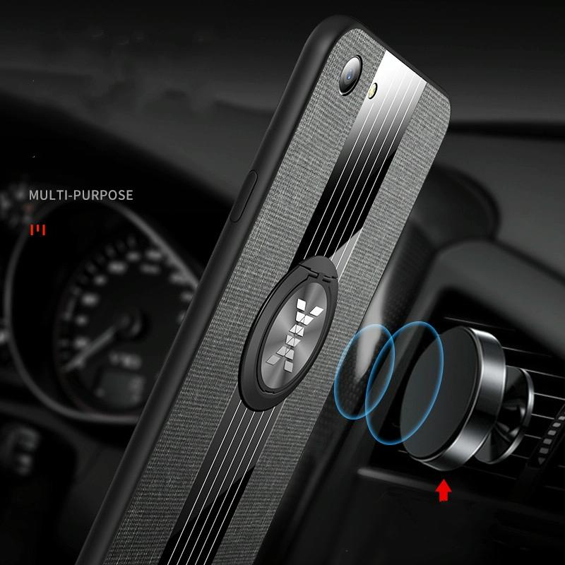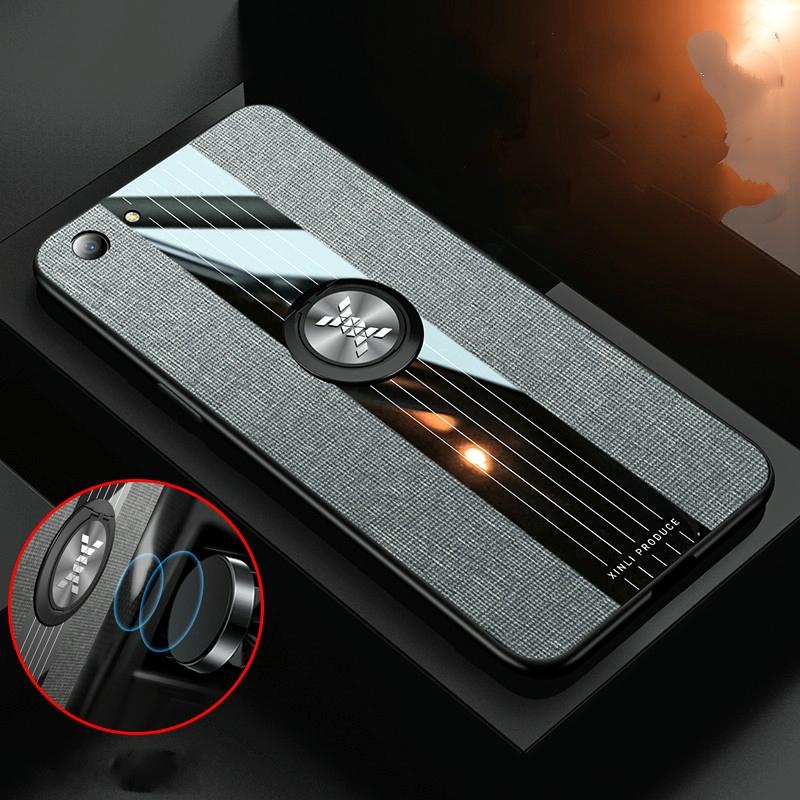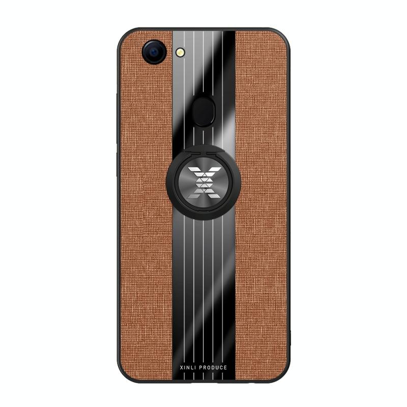For OPPO A73 XINLI Stitching Cloth Textue Shockproof TPU Protective Case with Ring Holder(Brown) (XINLI)