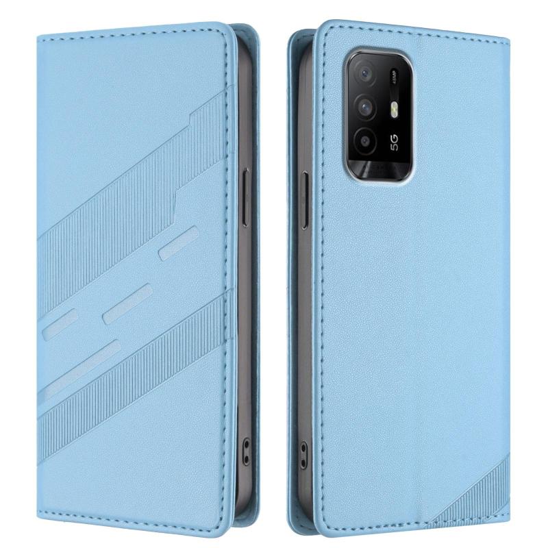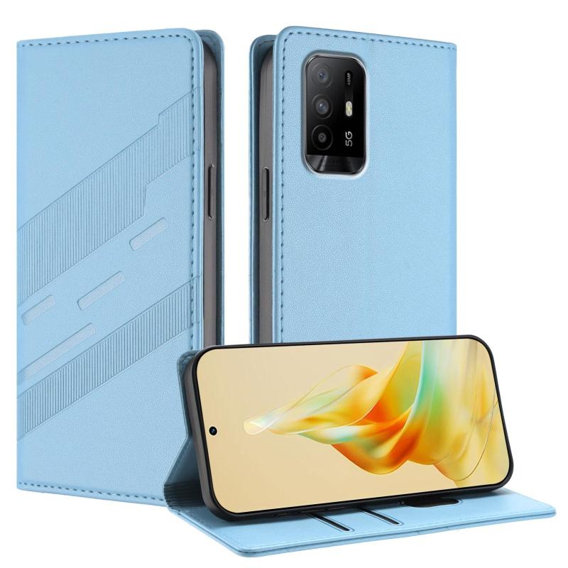 For OPPO A74 4G Embossed Multi-functional Wallet Retro Leather Phone Case(Light Blue)