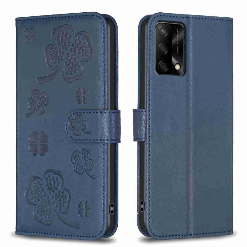 For OPPO A74 4G / F19 4G Four-leaf Embossed Leather Phone Case(Blue)