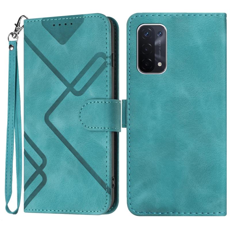 For OPPO A74 5G/A93 5G/A54 5G Line Pattern Skin Feel Leather Phone Case(Light Blue)