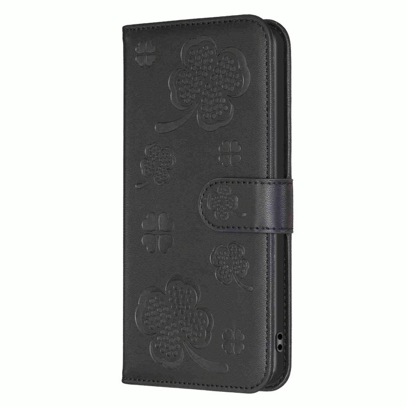 For OPPO A76 5G / A36 4G Four-leaf Embossed Leather Phone Case(Black)
