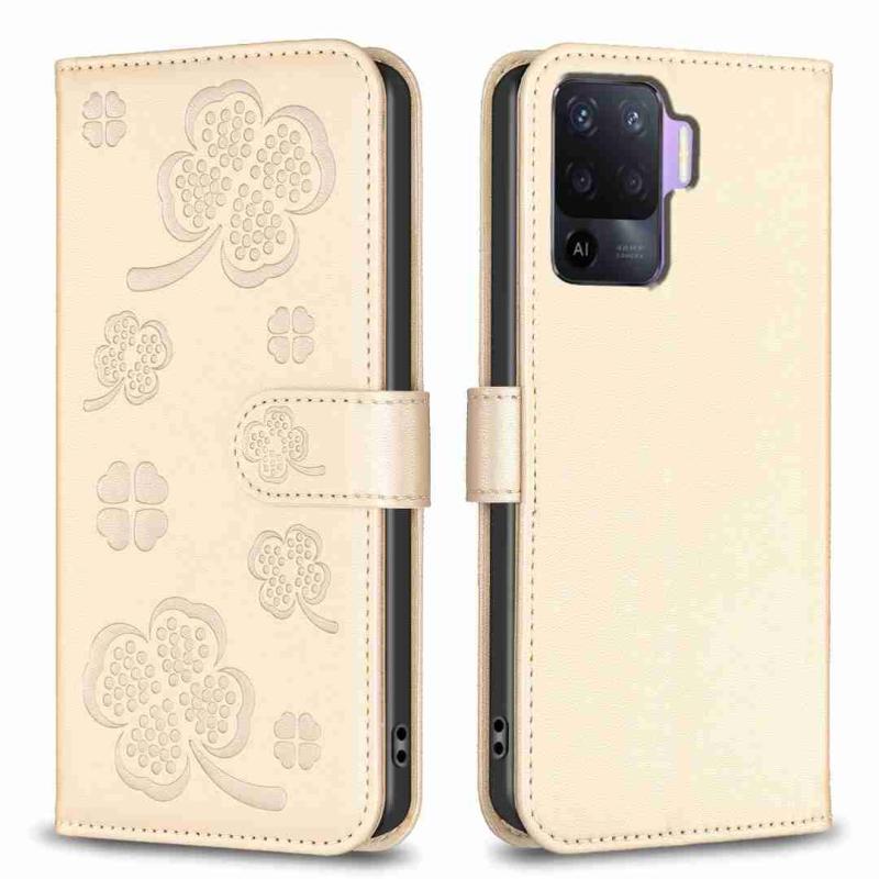 For OPPO A76 5G / A36 4G Four-leaf Embossed Leather Phone Case(Gold)