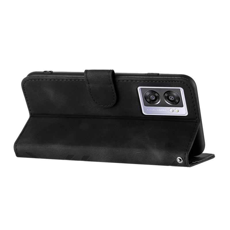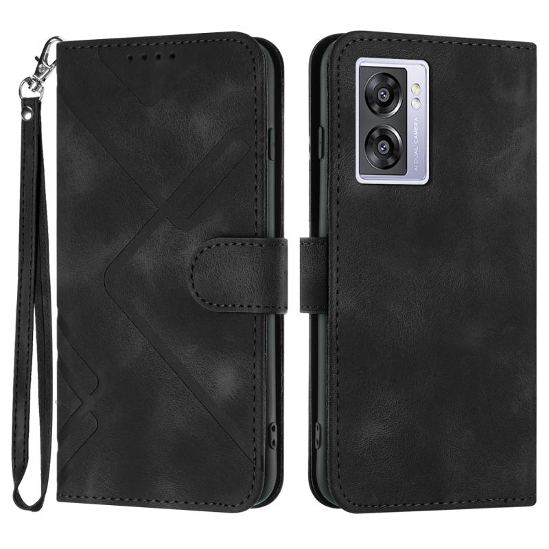 For OPPO A77 4G Global Line Pattern Skin Feel Leather Phone Case(Black)