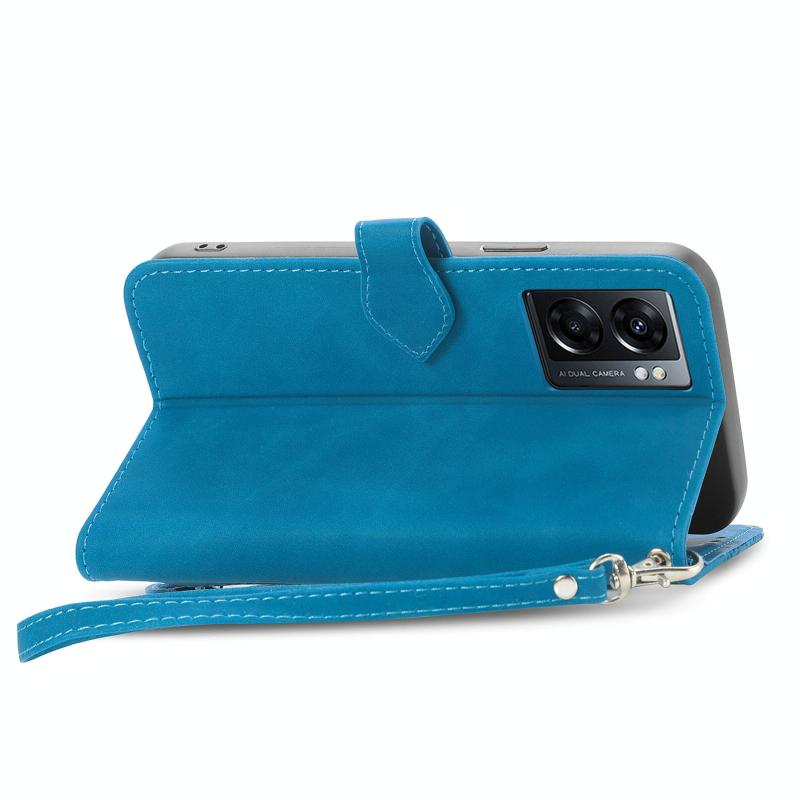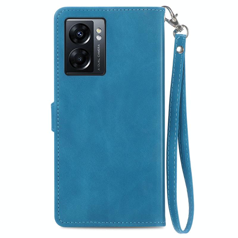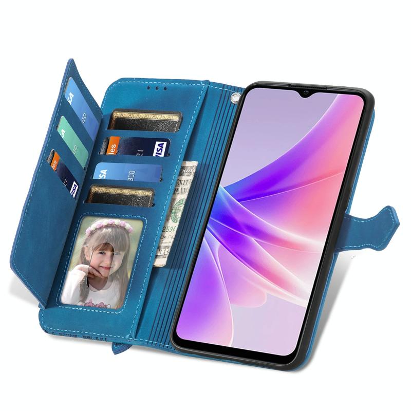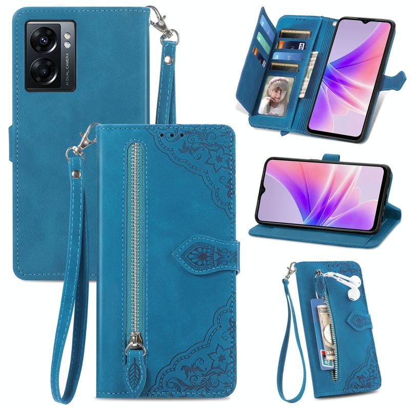 For OPPO A77 Embossed Flower Zipper Leather Phone Case(Blue)