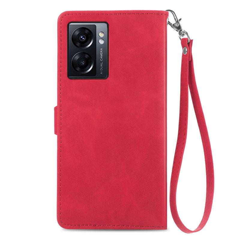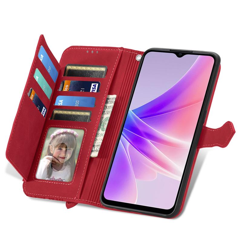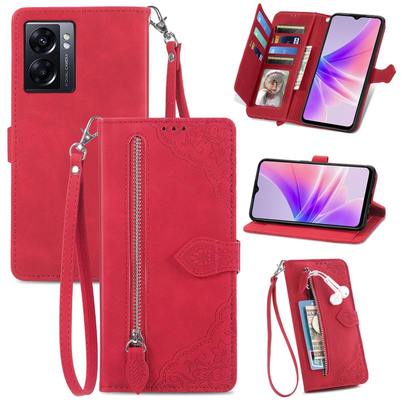 For OPPO A77 Embossed Flower Zipper Leather Phone Case(Red)