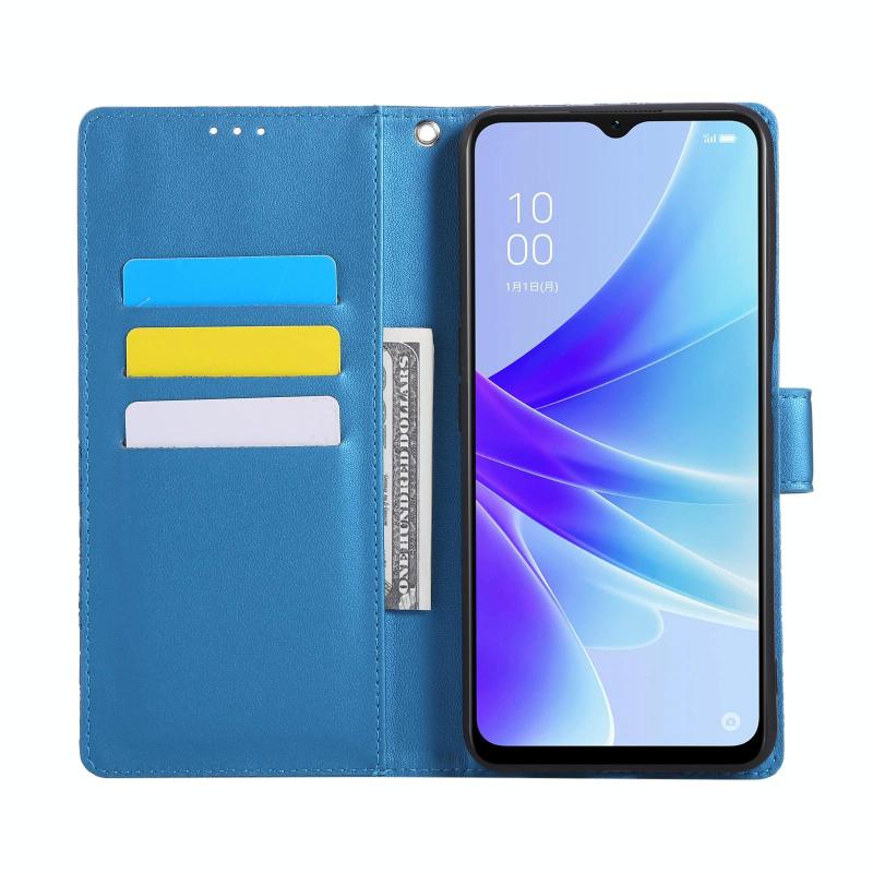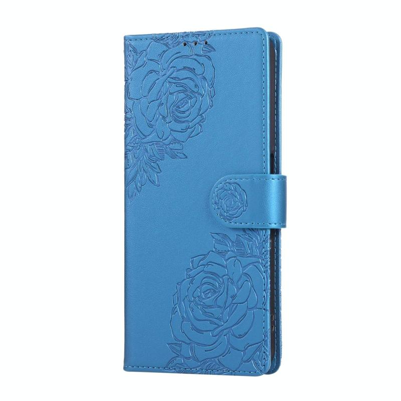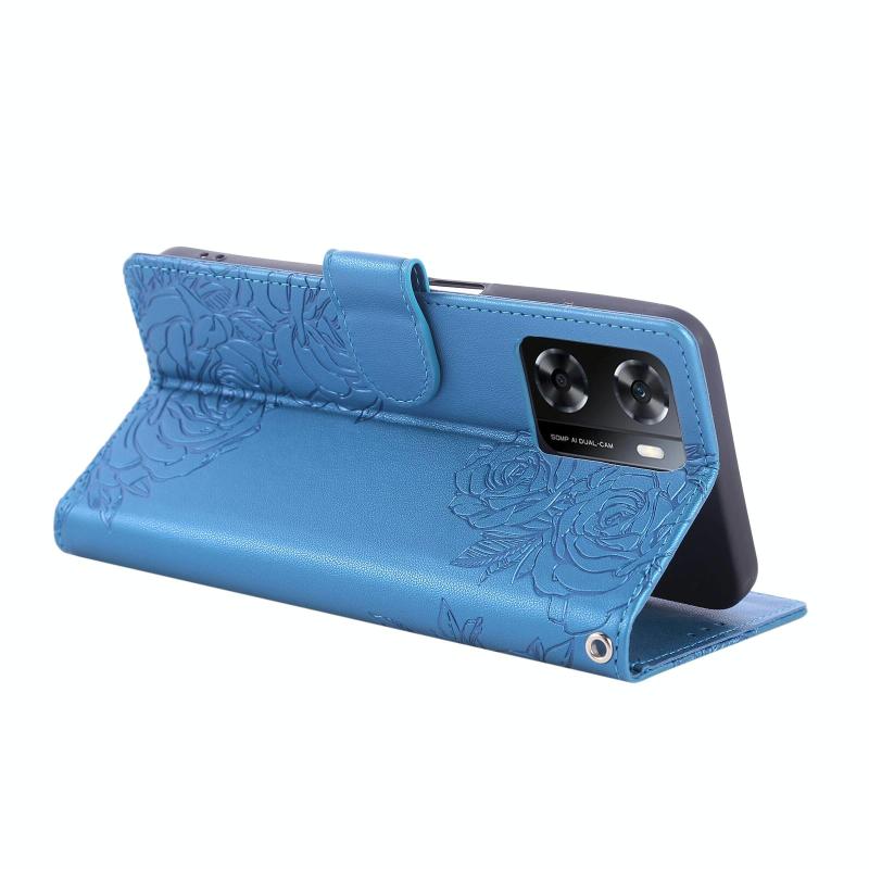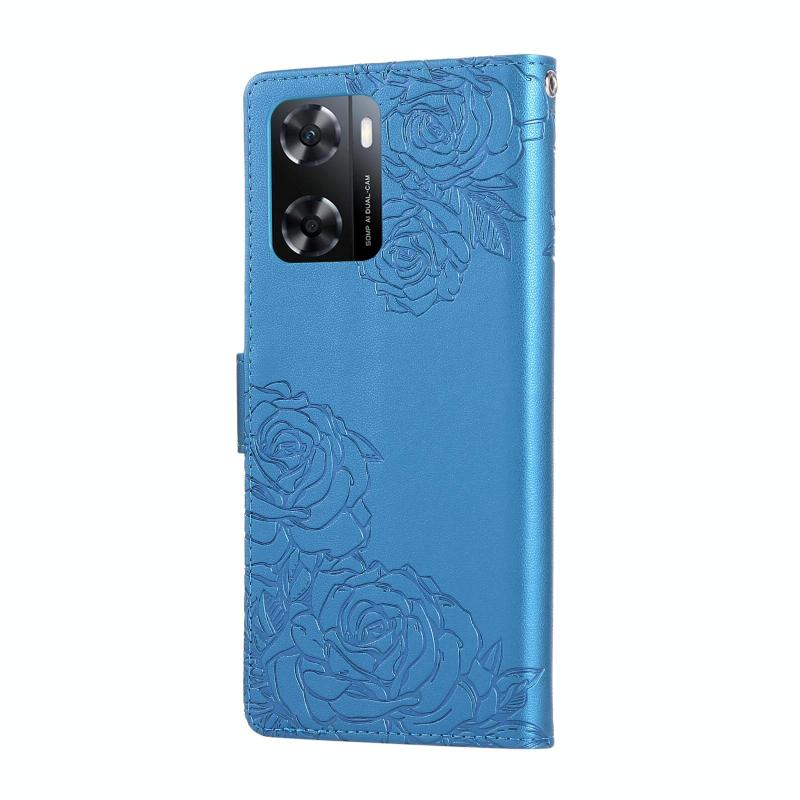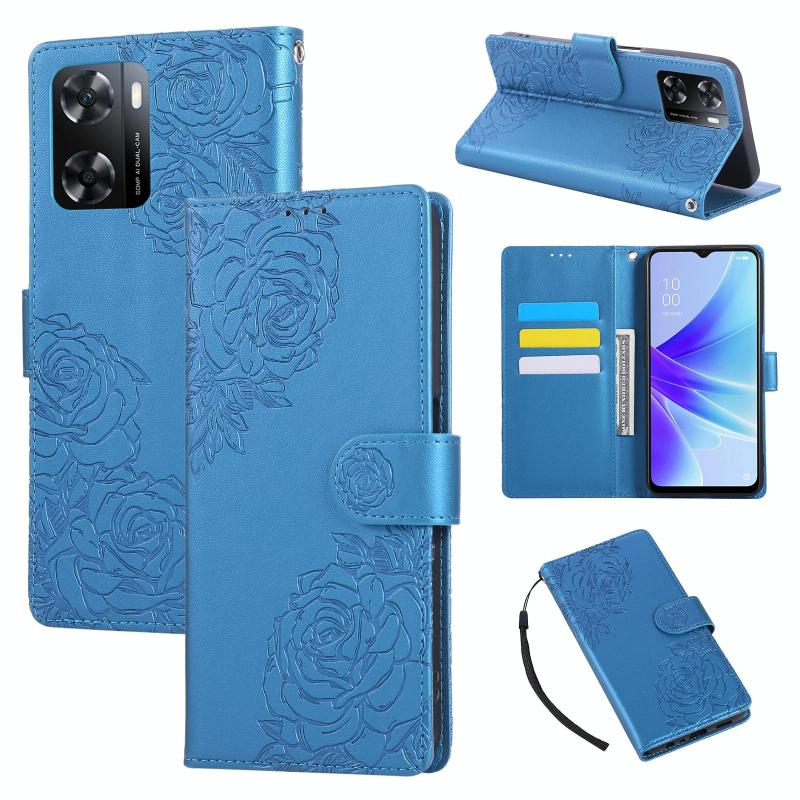 For OPPO A77 Rose Flower Embossed 3-Card Slots Leather Phone Case(Blue)