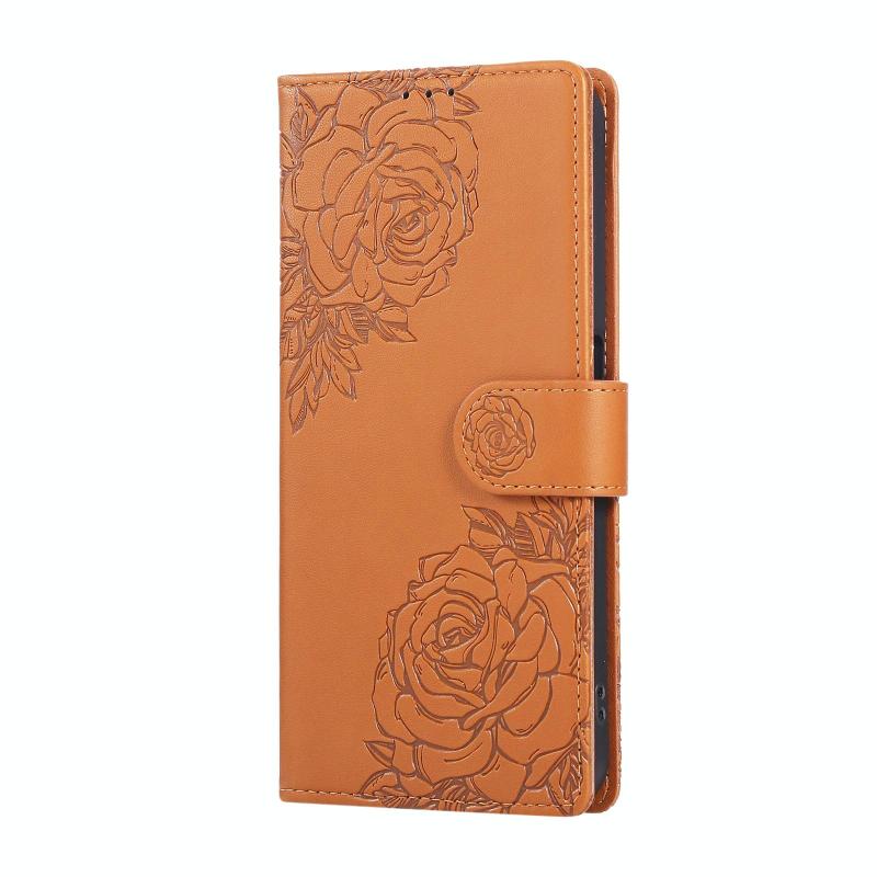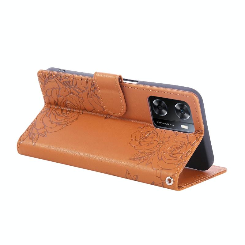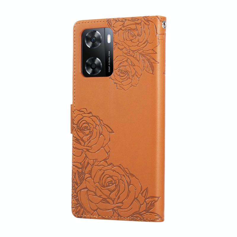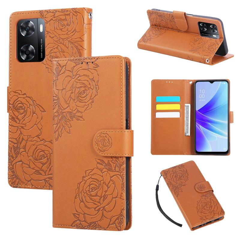 For OPPO A77 Rose Flower Embossed 3-Card Slots Leather Phone Case(Brown)