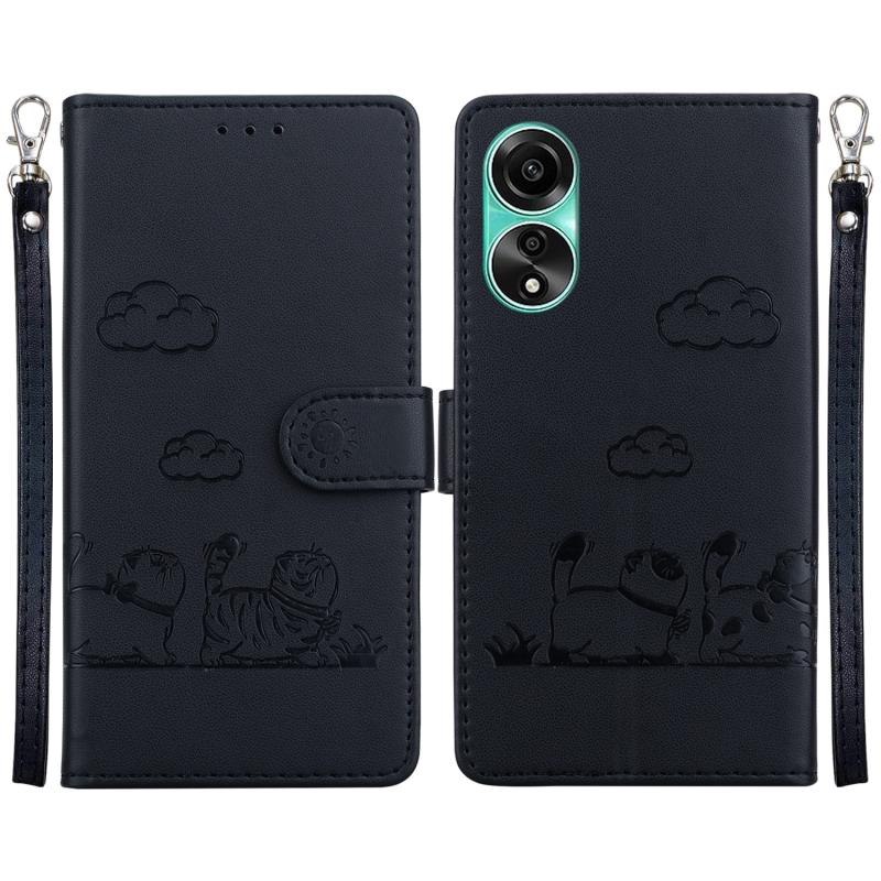 For OPPO A78 4G Cute Cats RFID Leather Phone Case(Black)