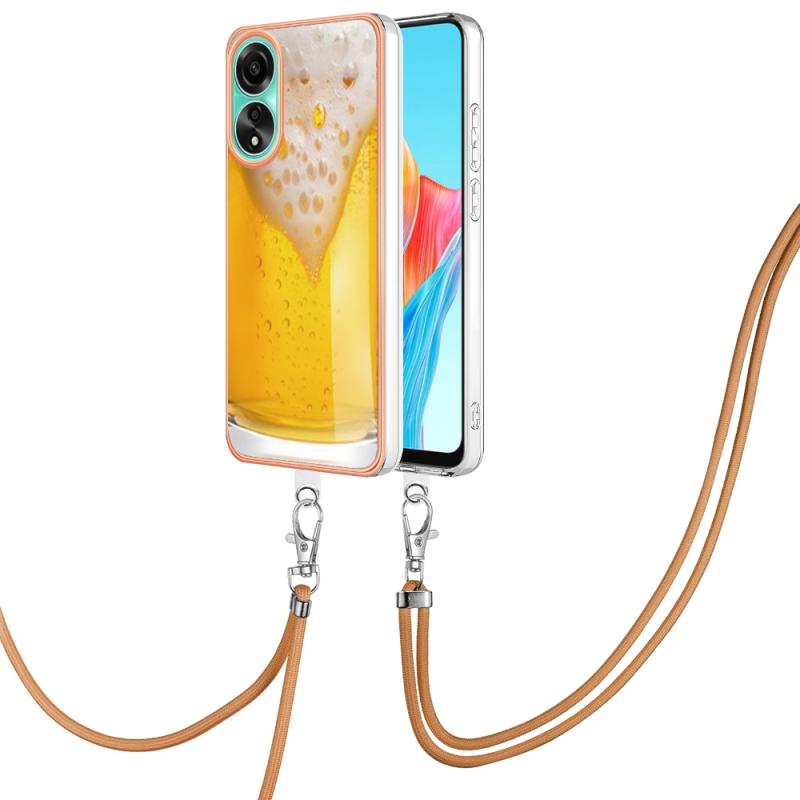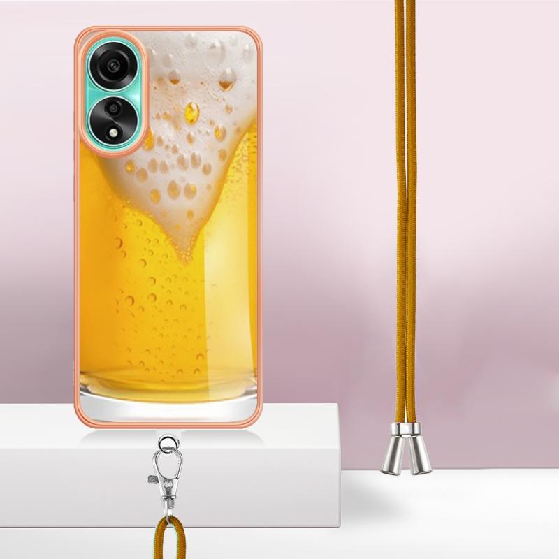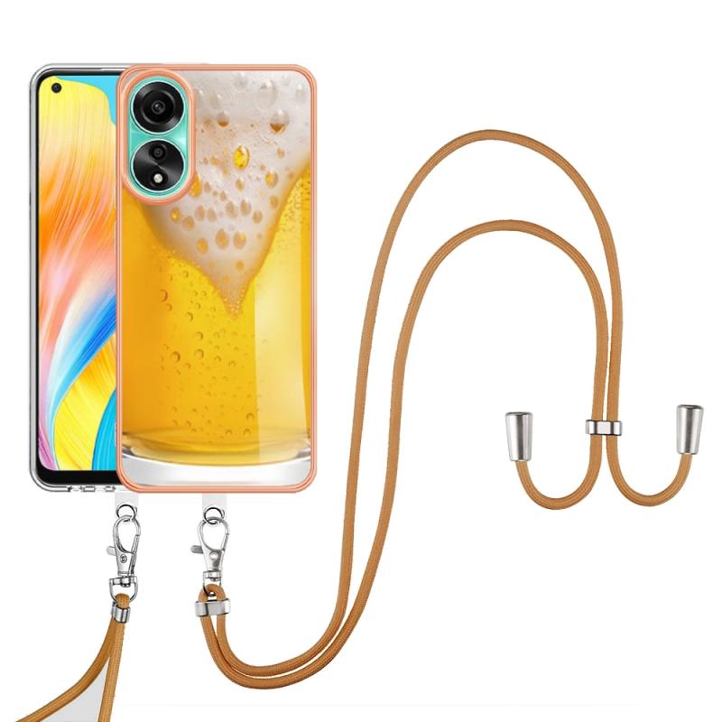 For OPPO A78 4G Electroplating Dual-side IMD Phone Case with Lanyard(Draft Beer)