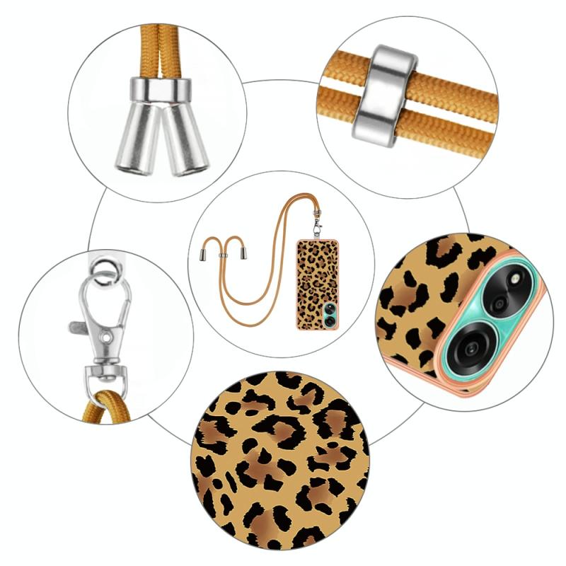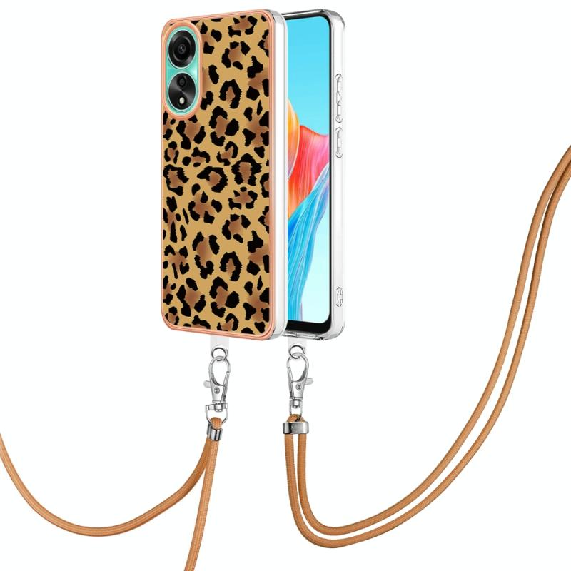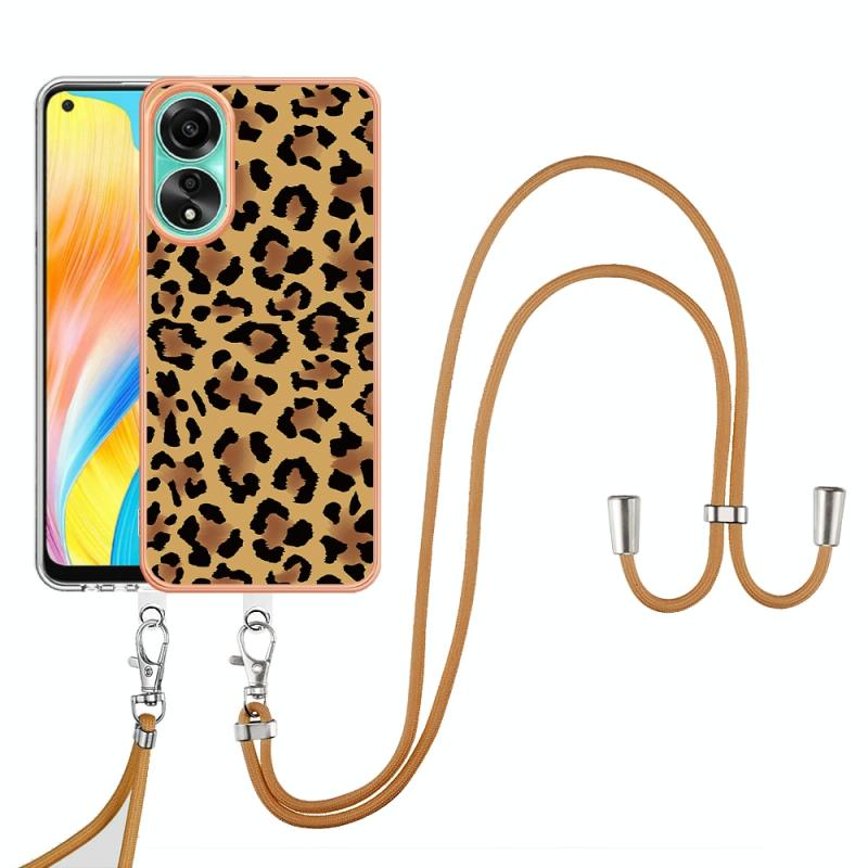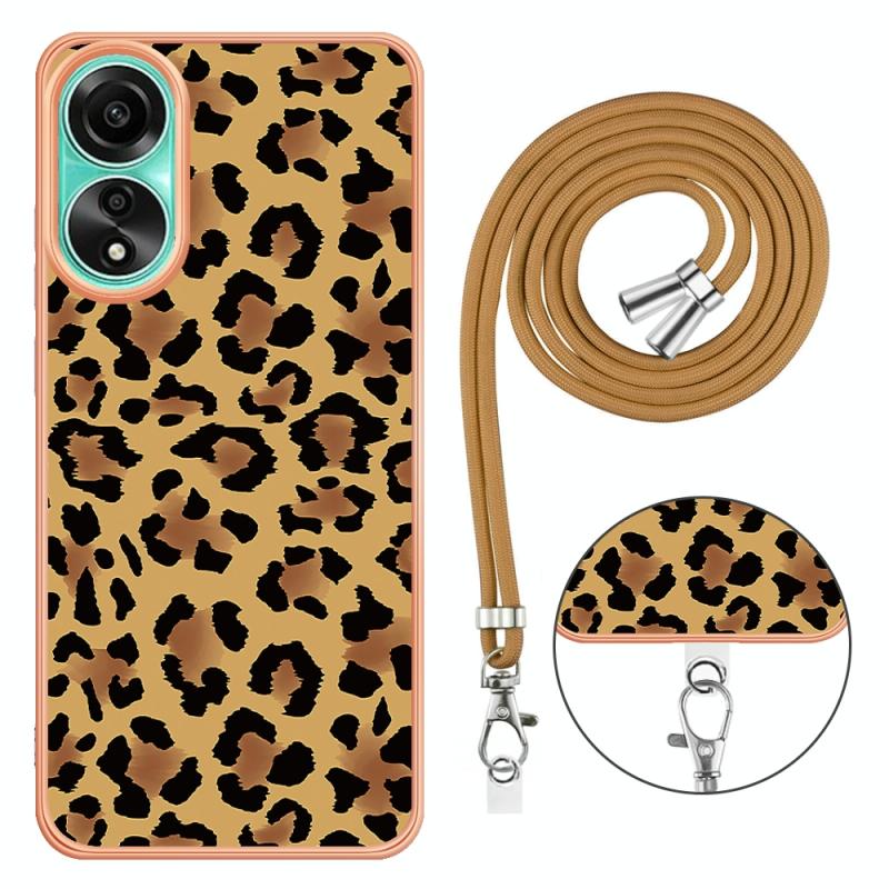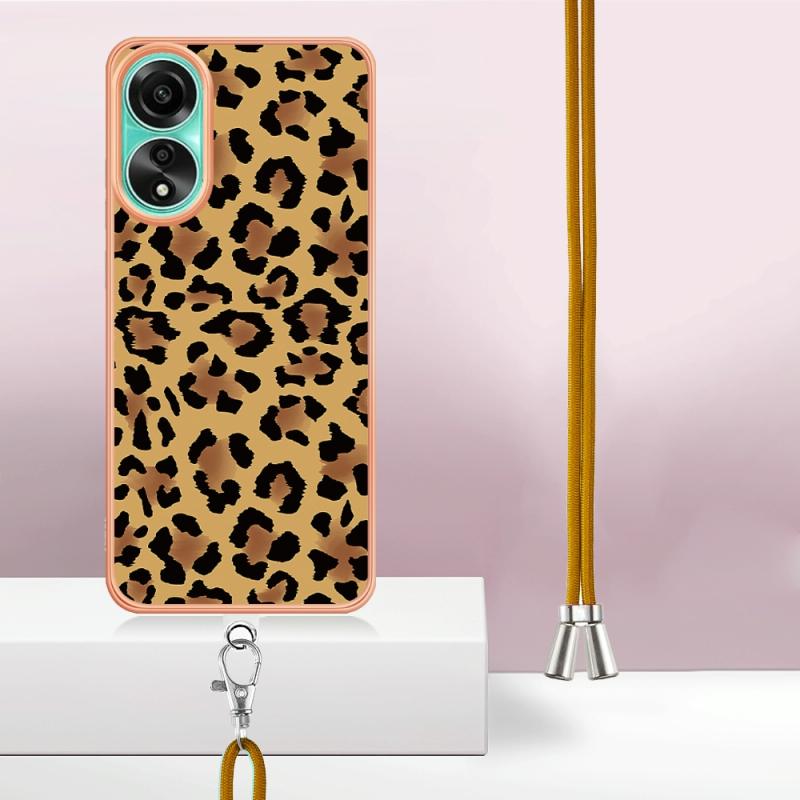 For OPPO A78 4G Electroplating Dual-side IMD Phone Case with Lanyard(Leopard Print)
