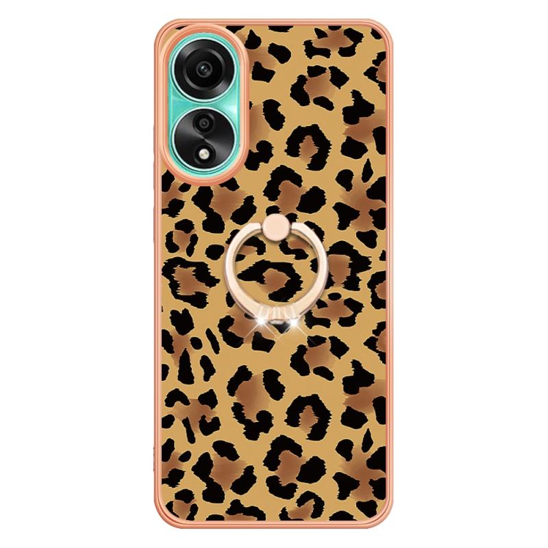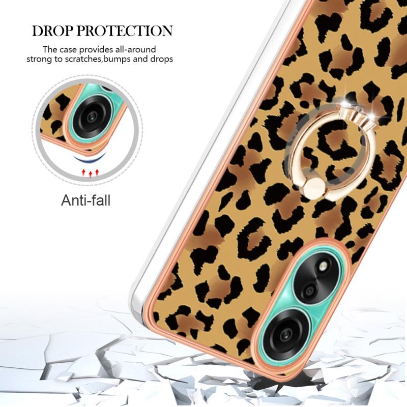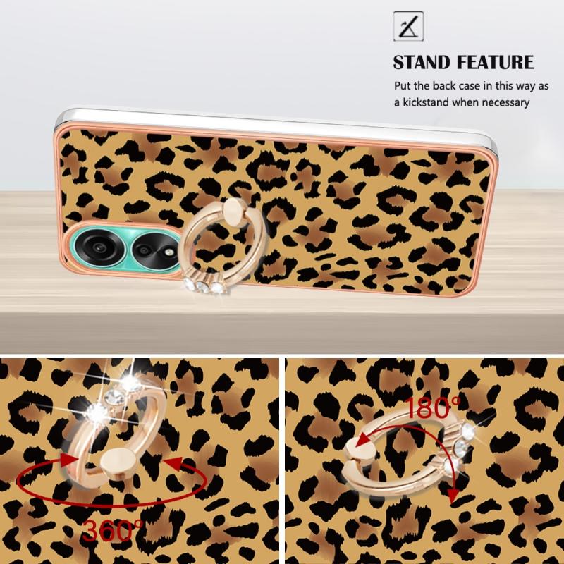 For OPPO A78 4G Electroplating Dual-side IMD Phone Case with Ring Holder(Leopard Print)