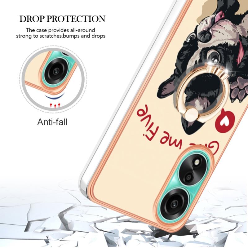 For OPPO A78 4G Electroplating Dual-side IMD Phone Case with Ring Holder(Lucky Dog)