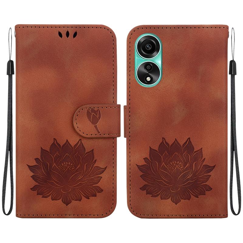 For OPPO A78 4G Lotus Embossed Leather Phone Case(Brown)