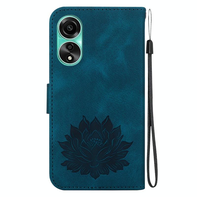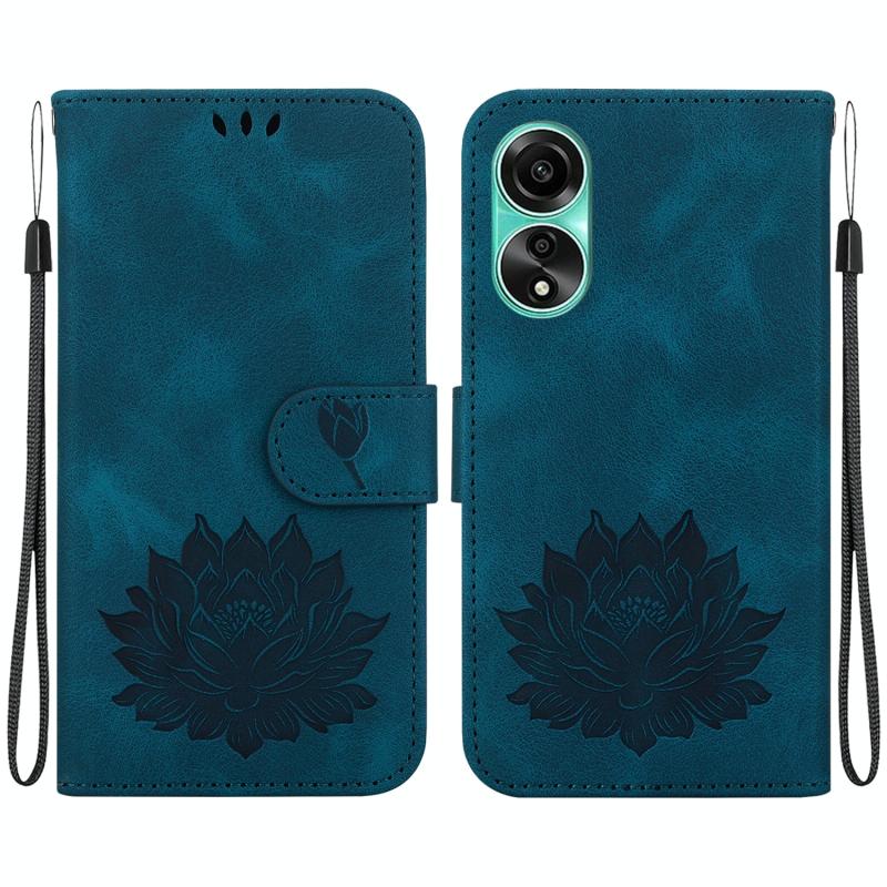 For OPPO A78 4G Lotus Embossed Leather Phone Case(Dark Blue)