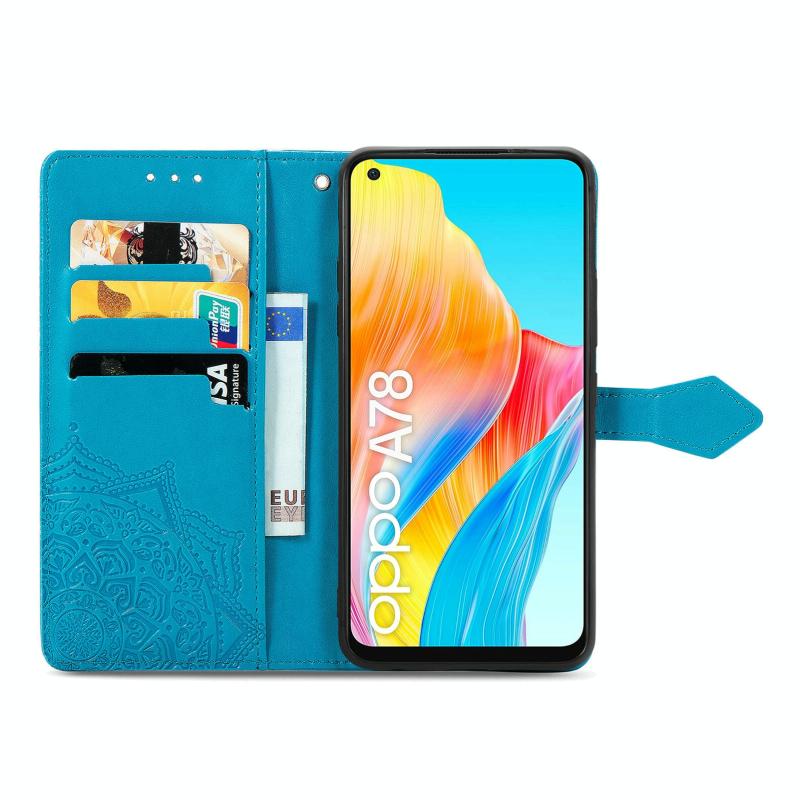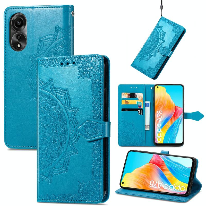 For OPPO A78 4G Mandala Flower Embossed Leather Phone Case(Blue)