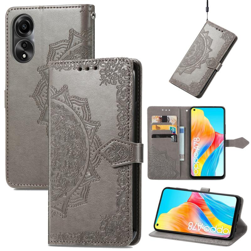 For OPPO A78 4G Mandala Flower Embossed Leather Phone Case(Gray)