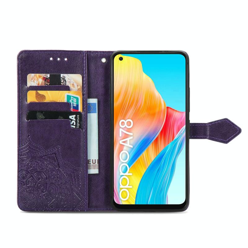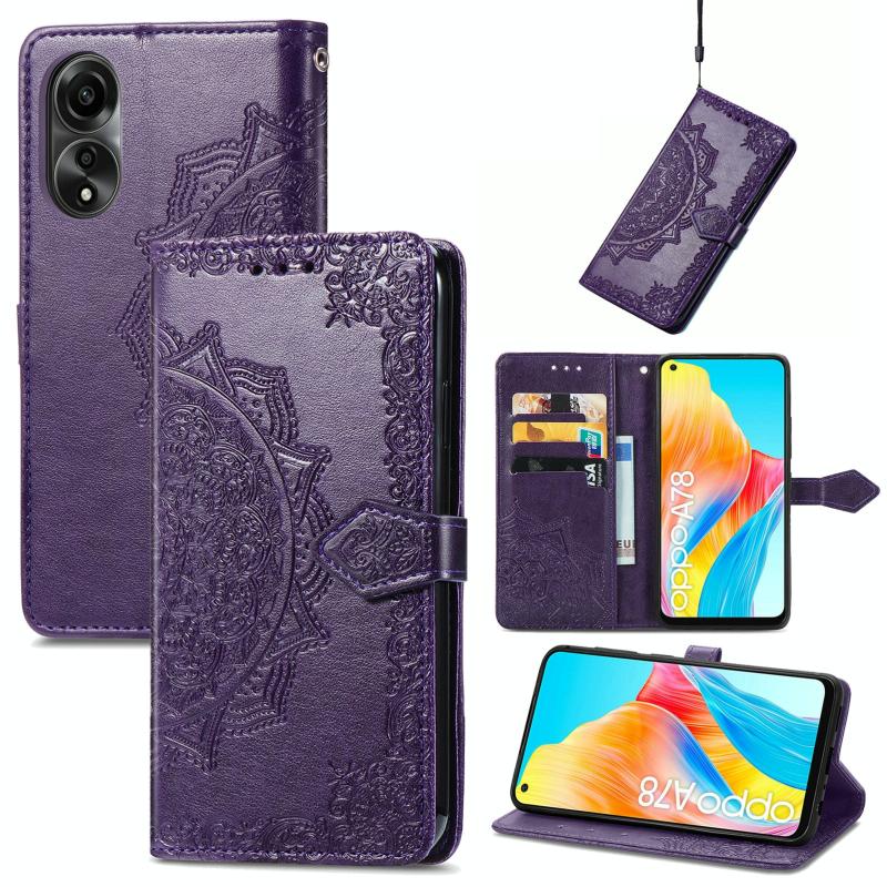 For OPPO A78 4G Mandala Flower Embossed Leather Phone Case(Purple)