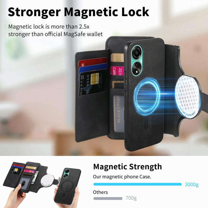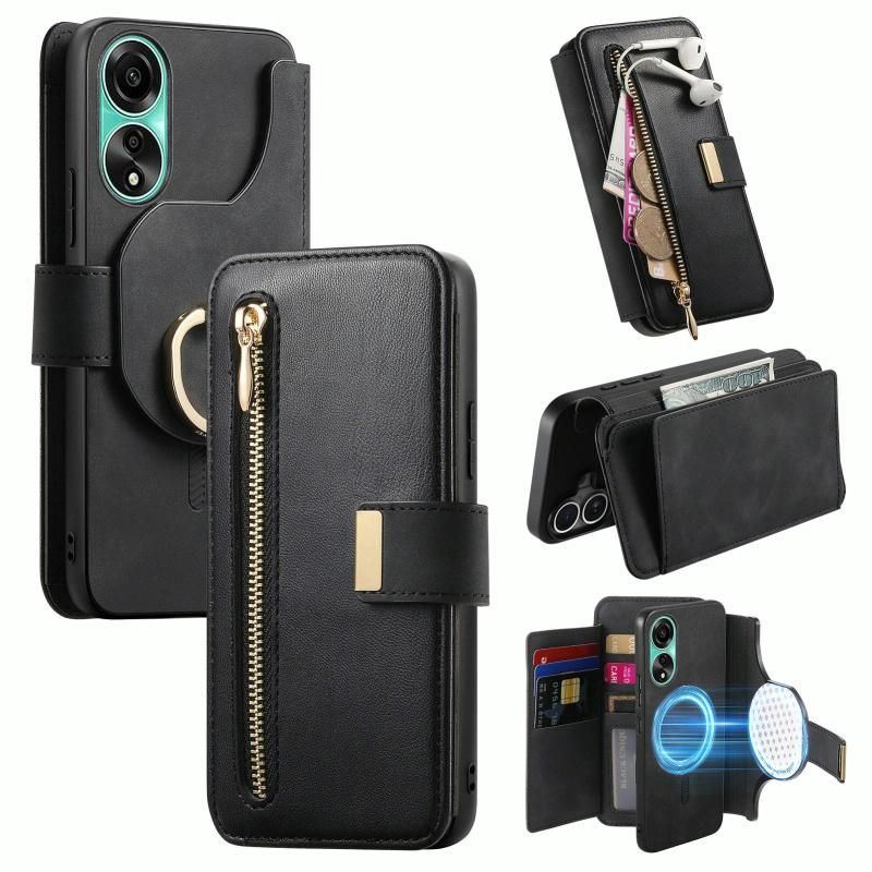 For OPPO A78 4G Ring Zipper Wallet RFID Blocking MagSafe Leather Phone Case(Black)