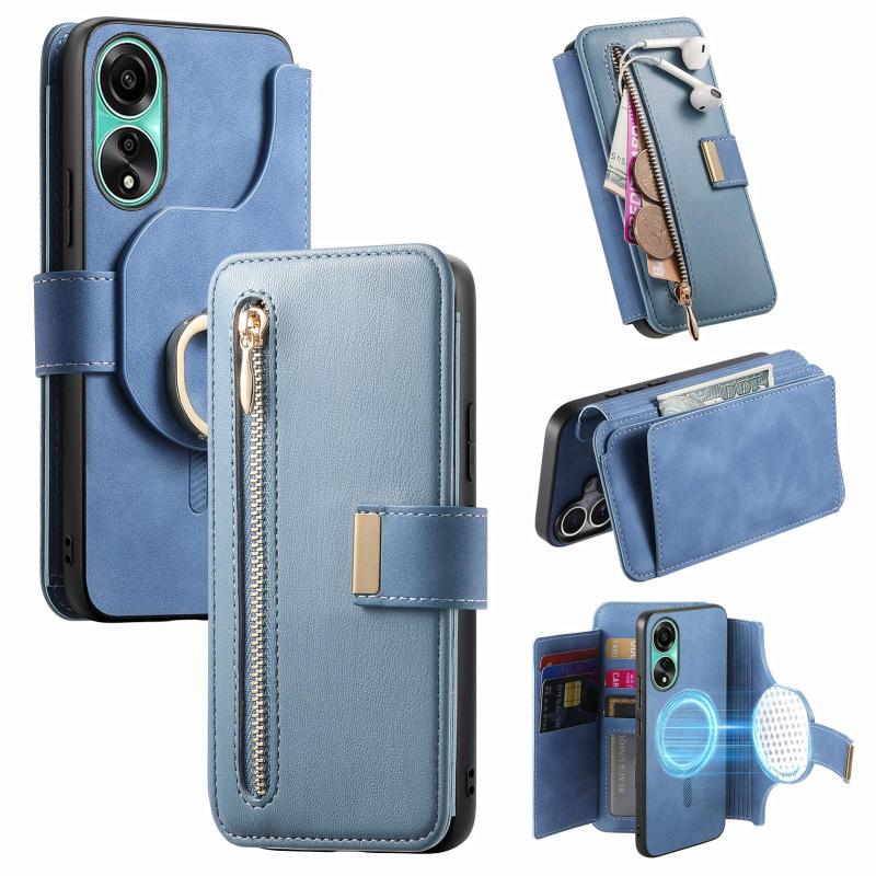 For OPPO A78 4G Ring Zipper Wallet RFID Blocking MagSafe Leather Phone Case(Blue)