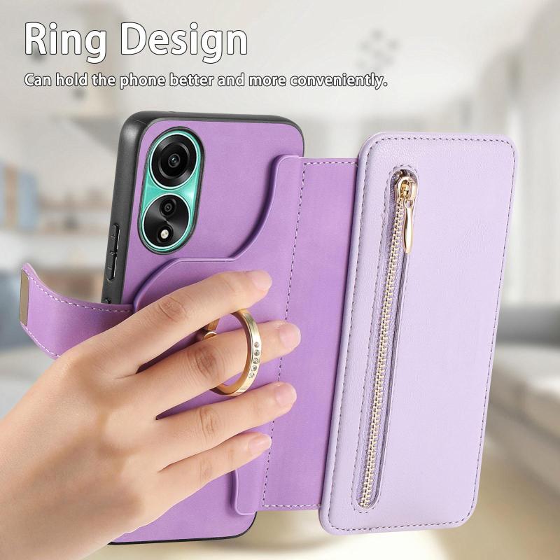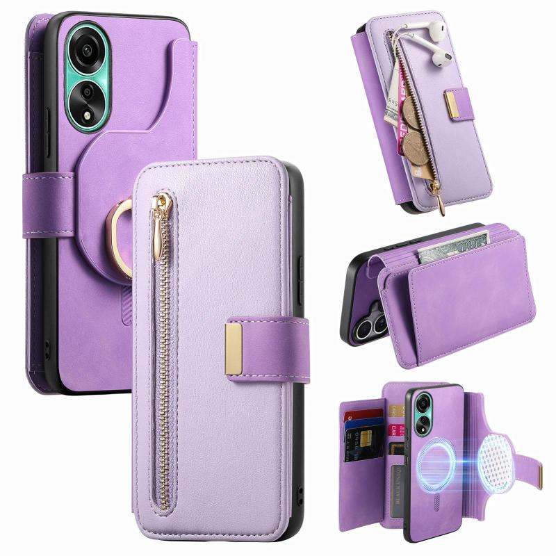 For OPPO A78 4G Ring Zipper Wallet RFID Blocking MagSafe Leather Phone Case(Purple)