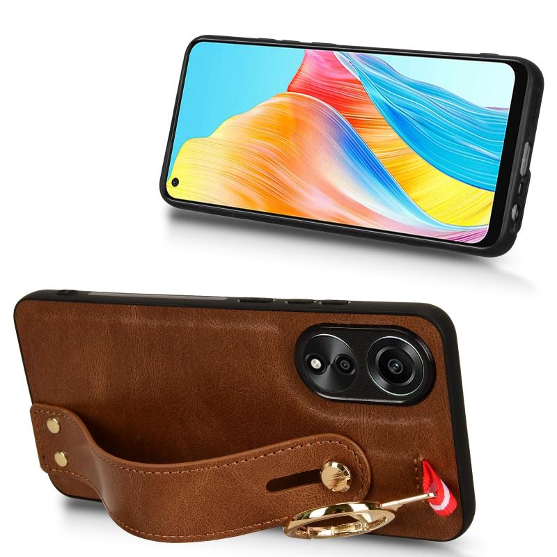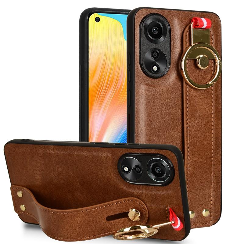 For OPPO A78 4G Wristband Leather Back Phone Case(Brown)