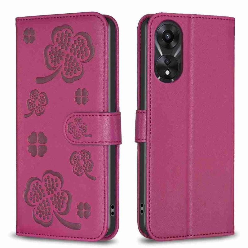 For OPPO A78 5G Four-leaf Embossed Leather Phone Case(Rose Red)