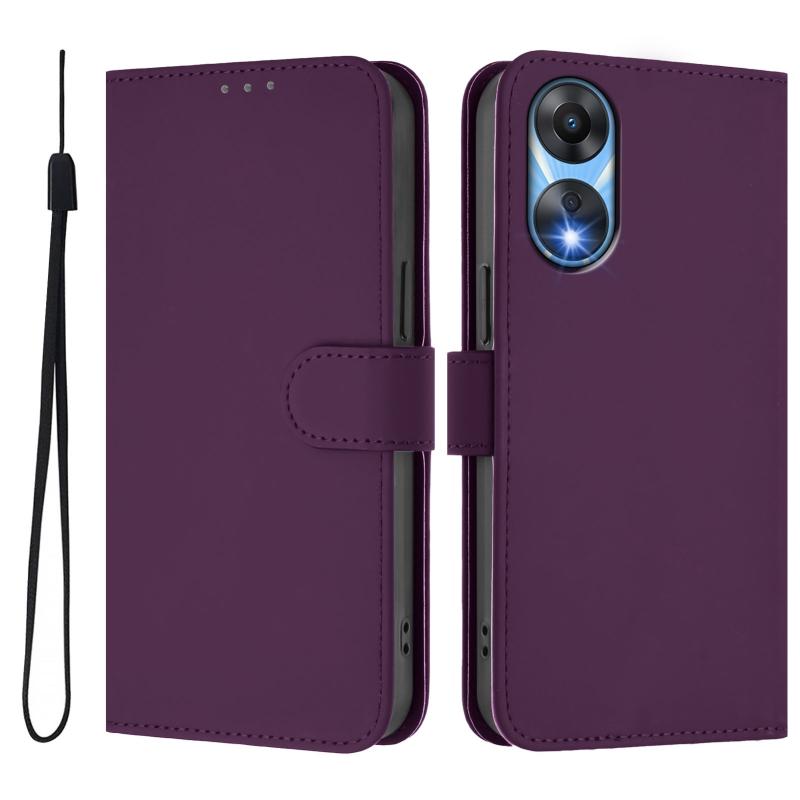For OPPO A78 5G Global Skin Feel Solid Color Leather Phone Case with Lanyard(Violet)