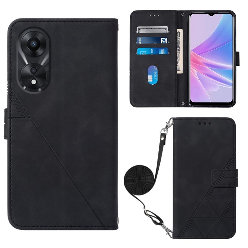 For OPPO A78 / A58 Crossbody 3D Embossed Flip Leather Phone Case(Black)