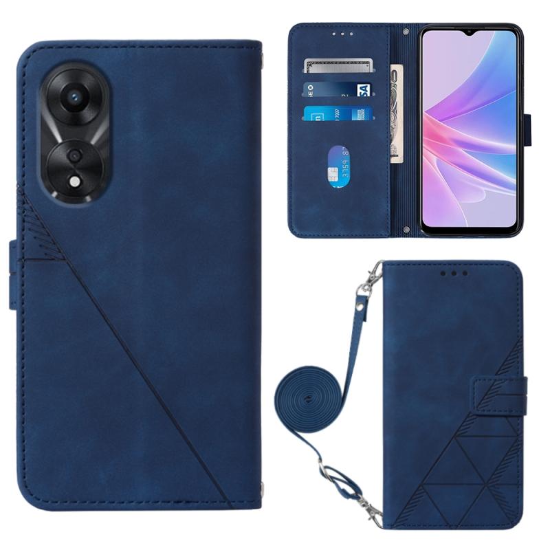 For OPPO A78 / A58 Crossbody 3D Embossed Flip Leather Phone Case(Blue)