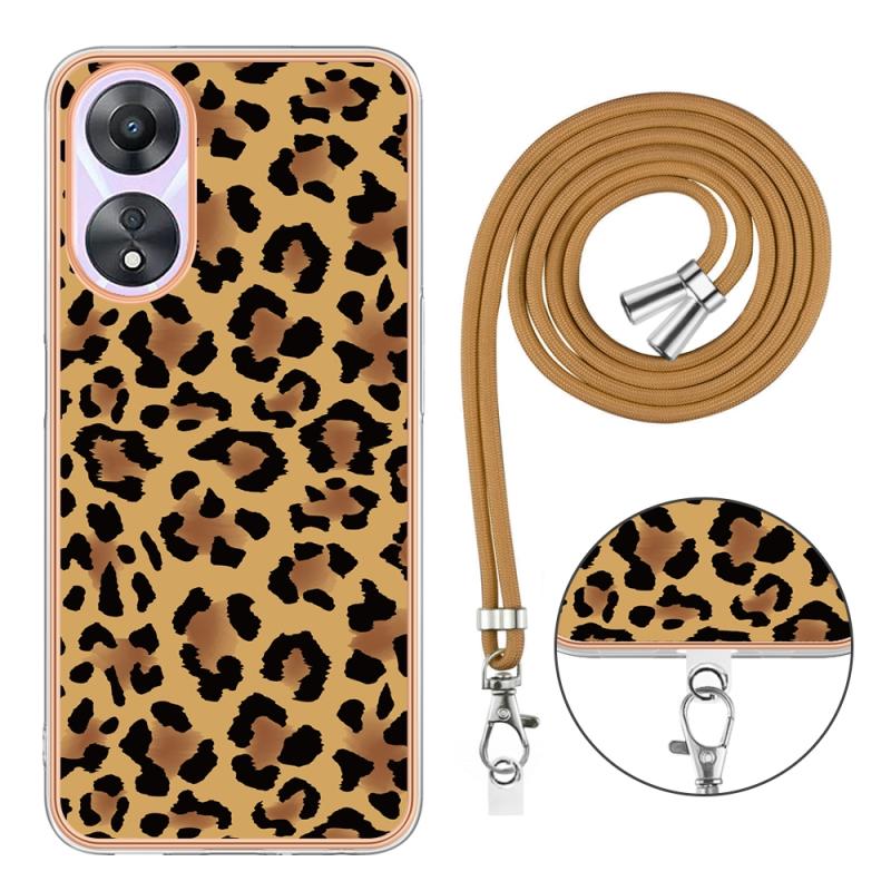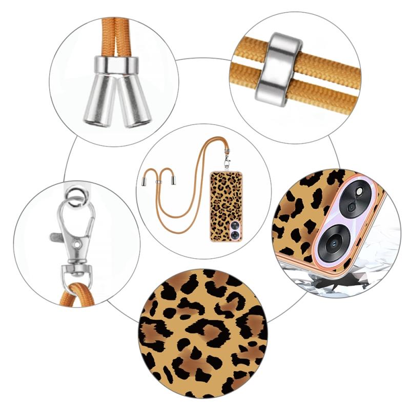 For OPPO A78 / A58 Electroplating Dual-side IMD Phone Case with Lanyard(Leopard Print)
