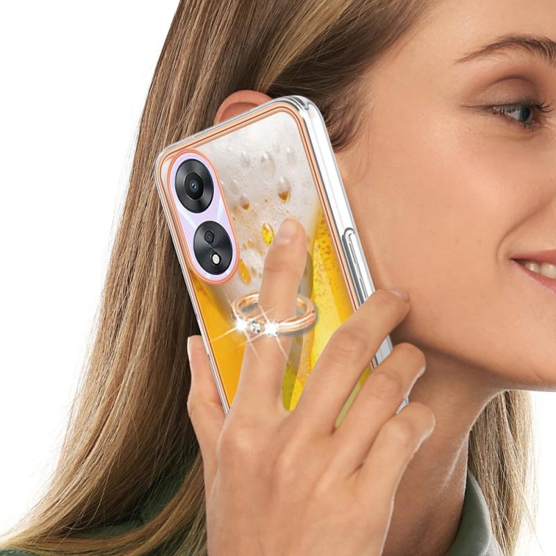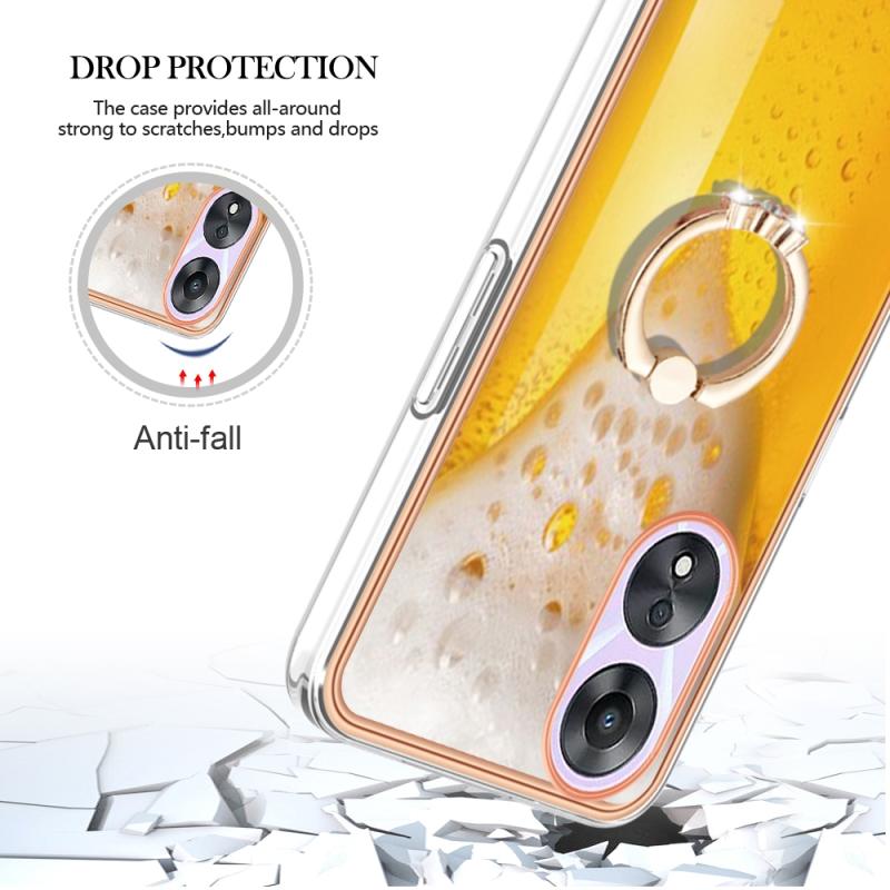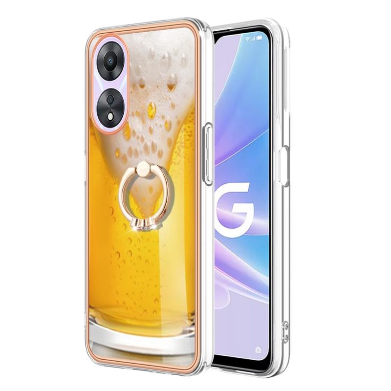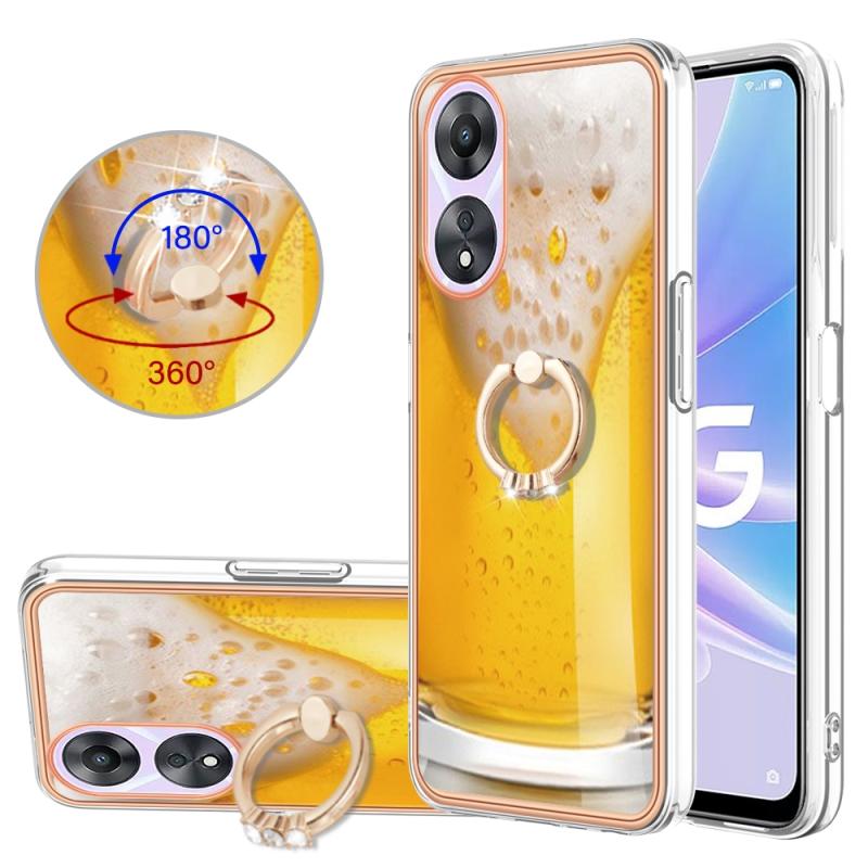 For OPPO A78 / A58 Electroplating Dual-side IMD Phone Case with Ring Holder(Draft Beer)