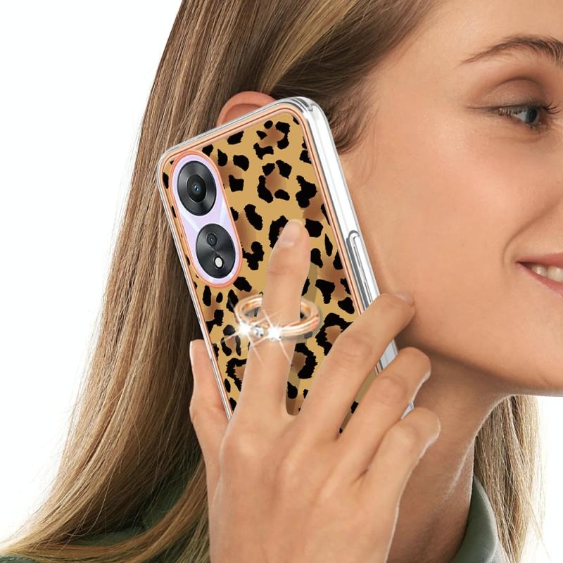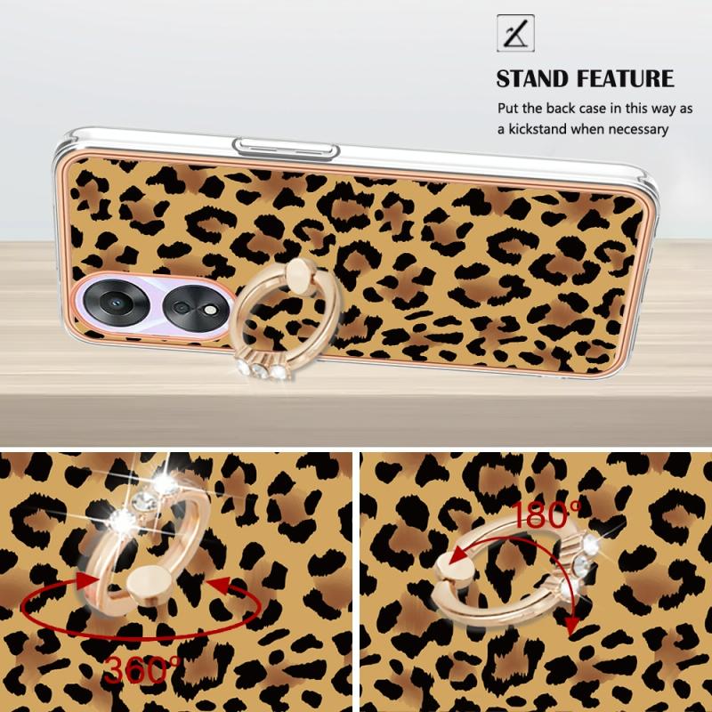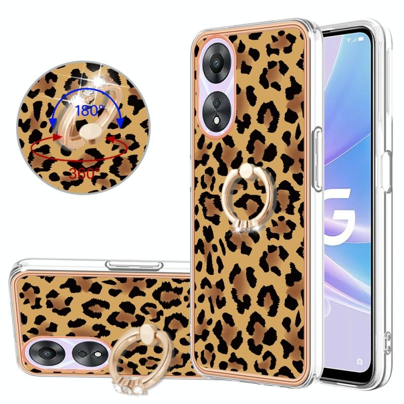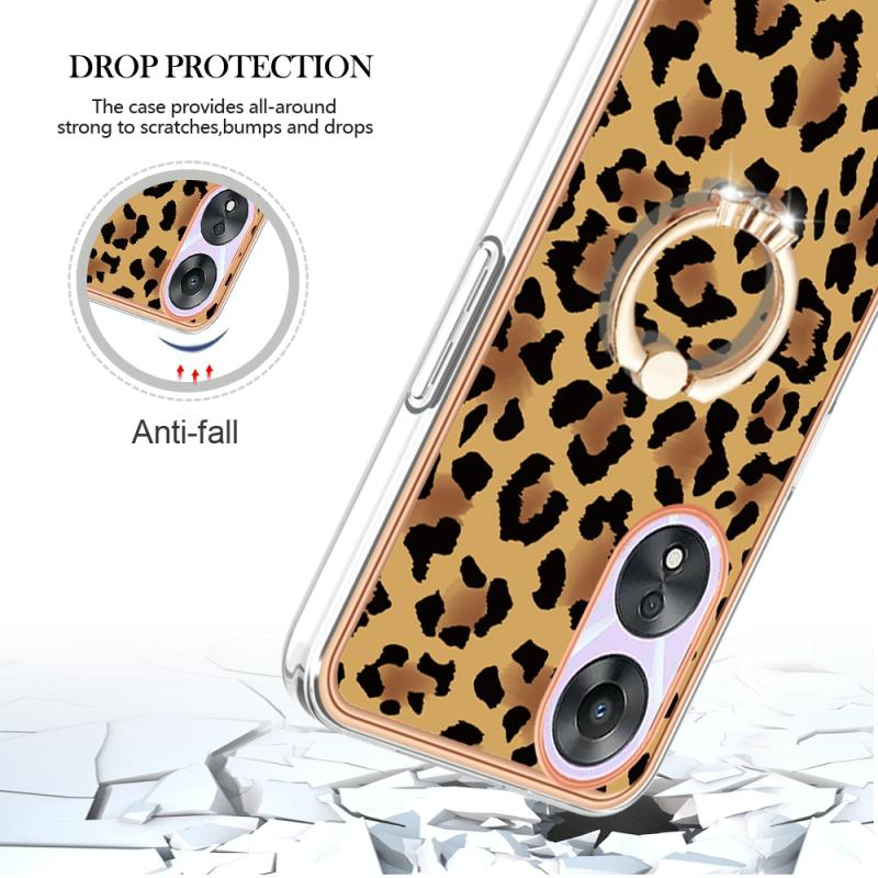 For OPPO A78 / A58 Electroplating Dual-side IMD Phone Case with Ring Holder(Leopard Print)