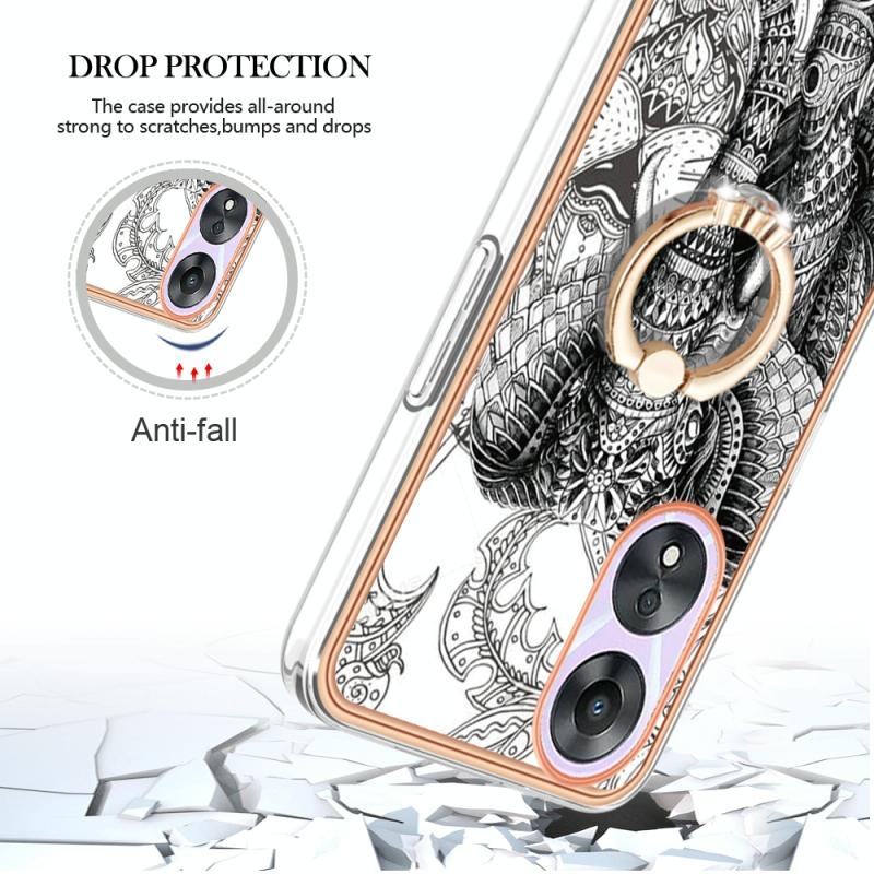 For OPPO A78 / A58 Electroplating Dual-side IMD Phone Case with Ring Holder(Totem Elephant)