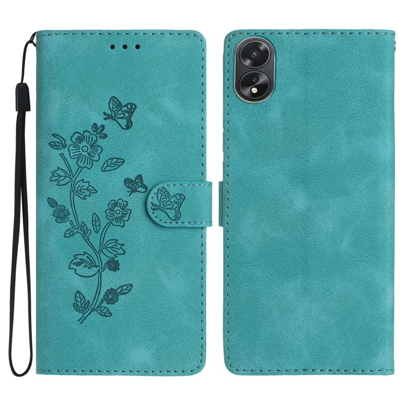 For OPPO A78 Flower Butterfly Embossing Pattern Leather Phone Case(Sky Blue)