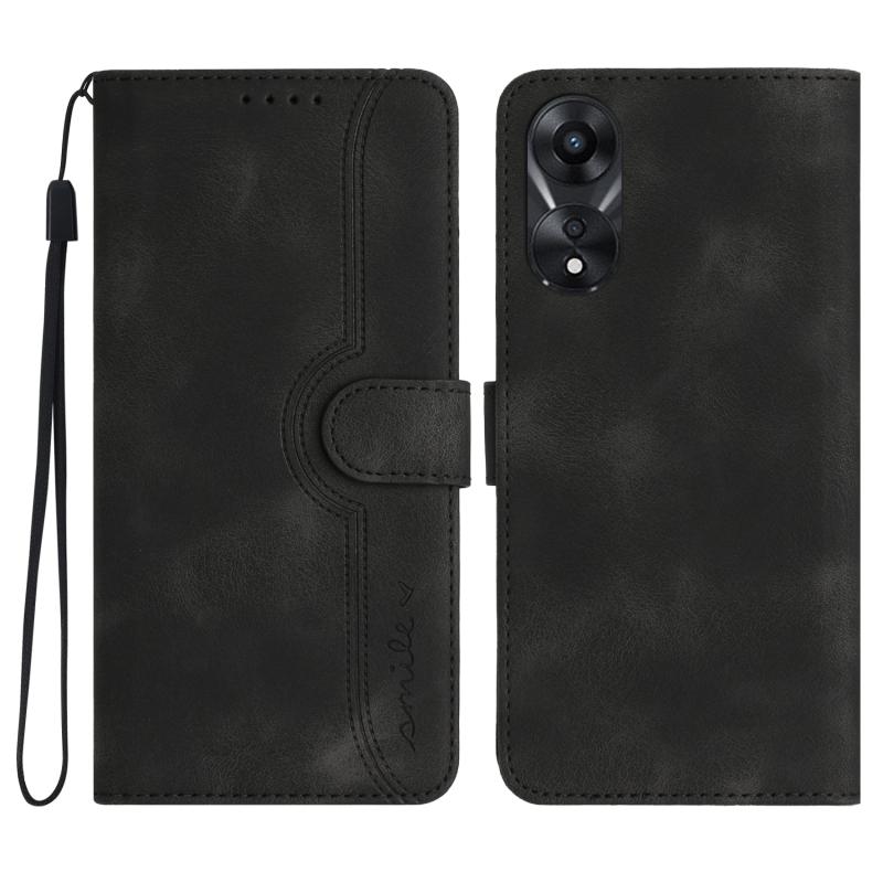For OPPO A78 Heart Pattern Skin Feel Leather Phone Case(Black)