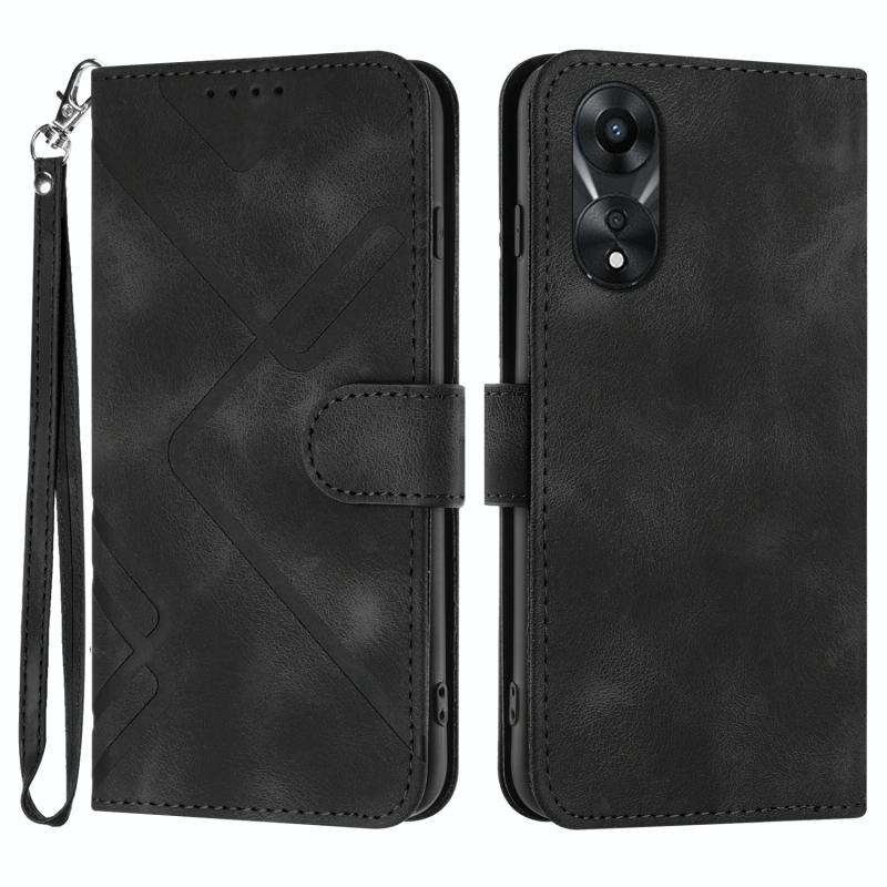 For OPPO A78 Line Pattern Skin Feel Leather Phone Case(Black)