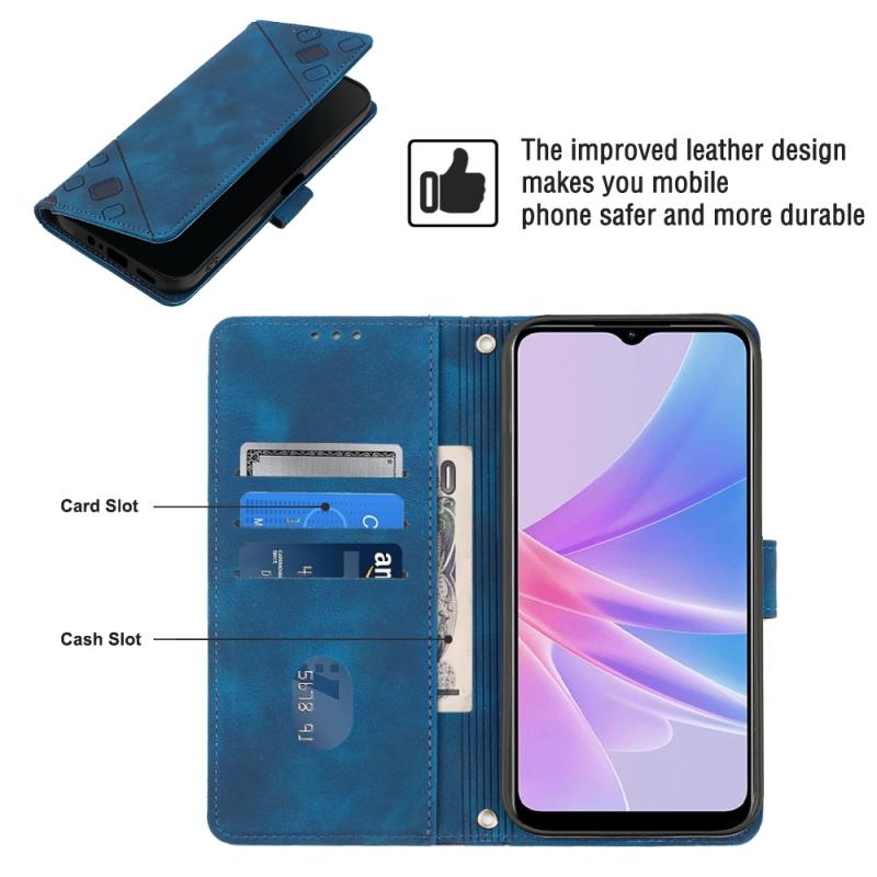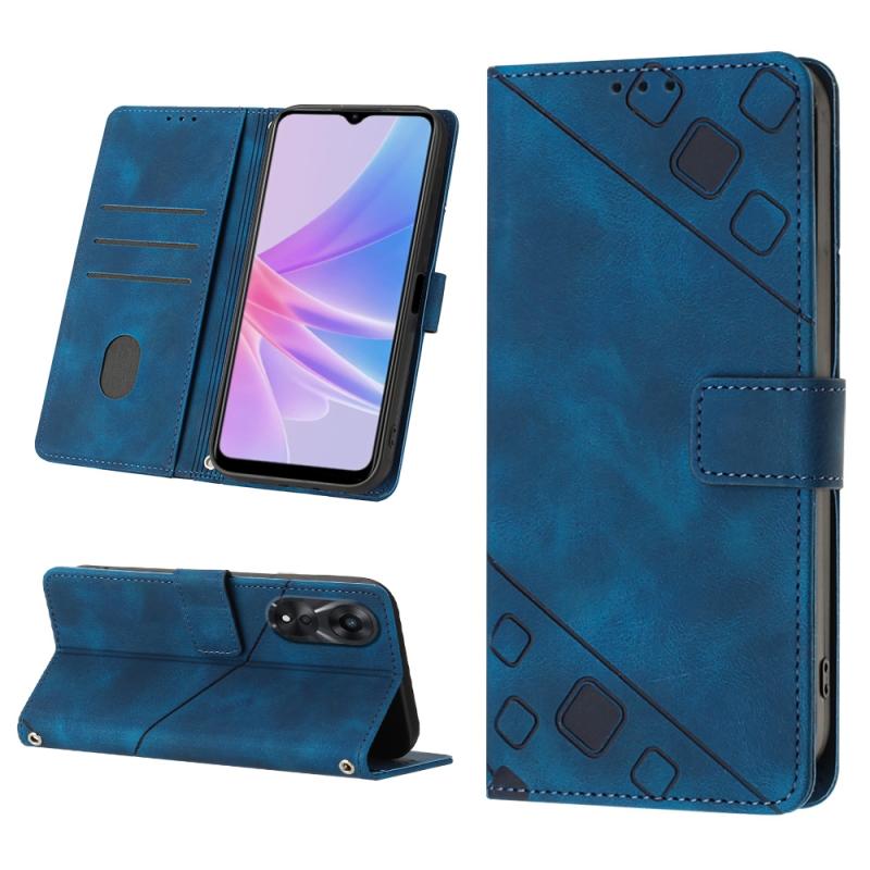 For OPPO A78 Skin-feel Embossed Leather Phone Case(Blue)