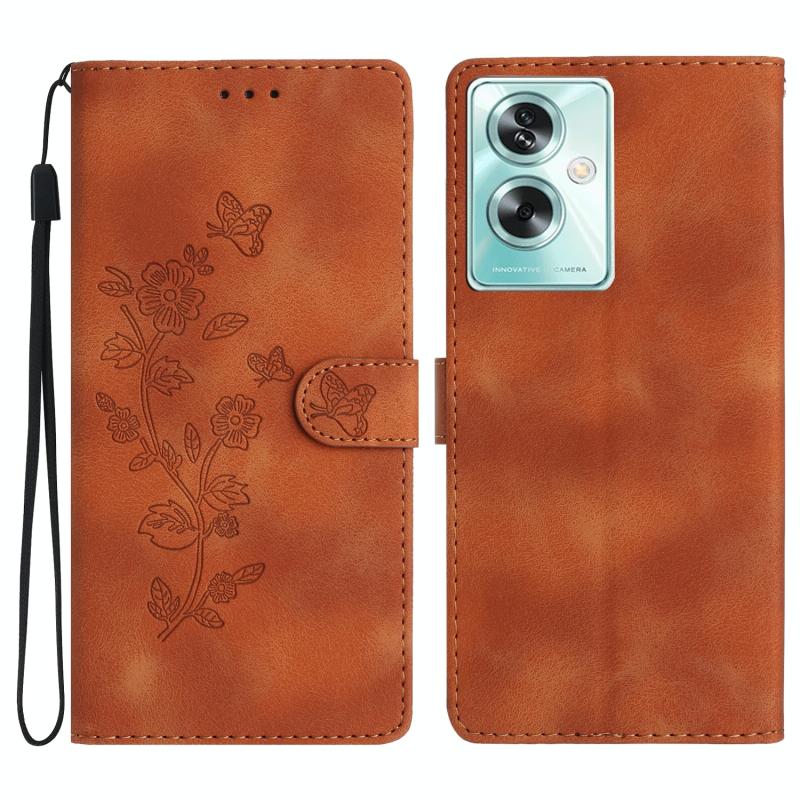 For OPPO A79 5G Flower Butterfly Embossing Pattern Leather Phone Case(Brown)
