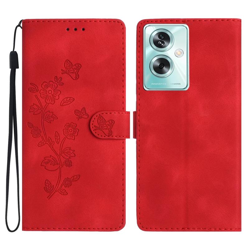 For OPPO A79 5G Flower Butterfly Embossing Pattern Leather Phone Case(Red)
