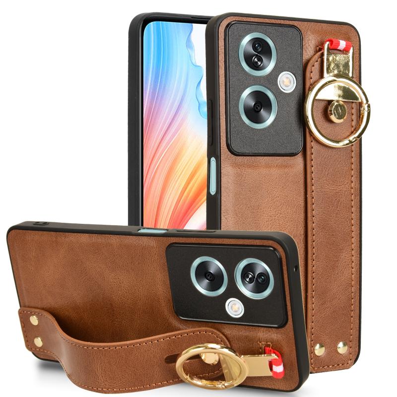 For OPPO A79 5G Global / A2 Wristband Leather Back Phone Case(Brown)