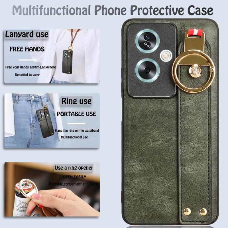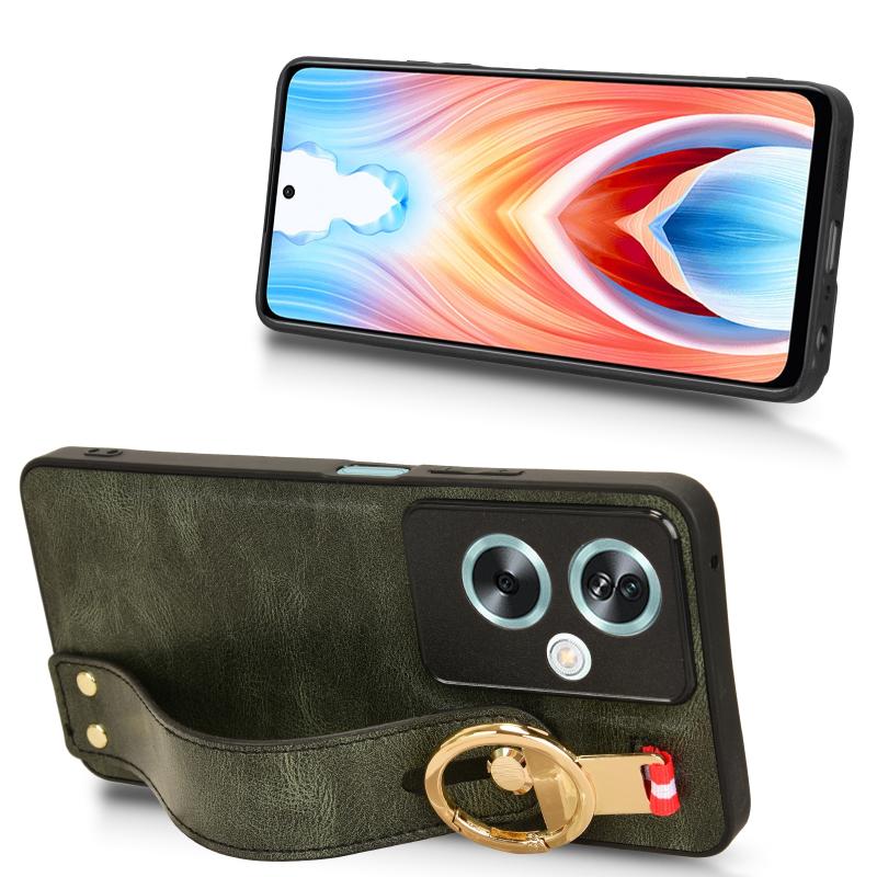 For OPPO A79 5G Global / A2 Wristband Leather Back Phone Case(Green)