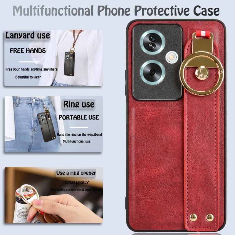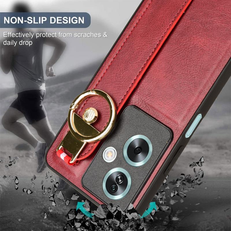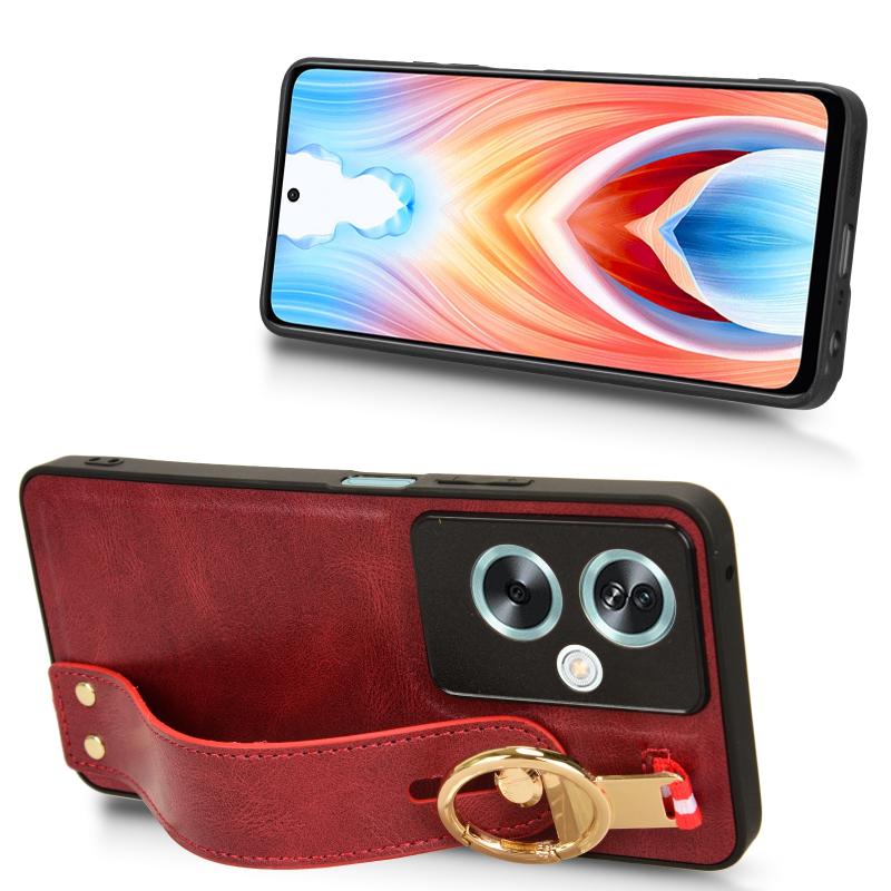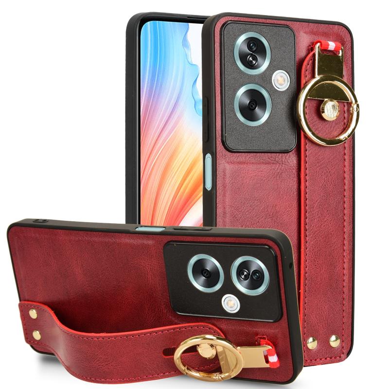 For OPPO A79 5G Global / A2 Wristband Leather Back Phone Case(Red)