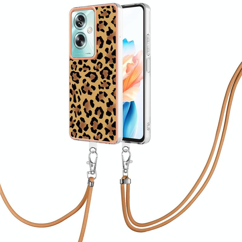 For OPPO A79 5G Global Electroplating Dual-side IMD Phone Case with Lanyard(Leopard Print)