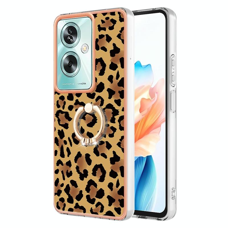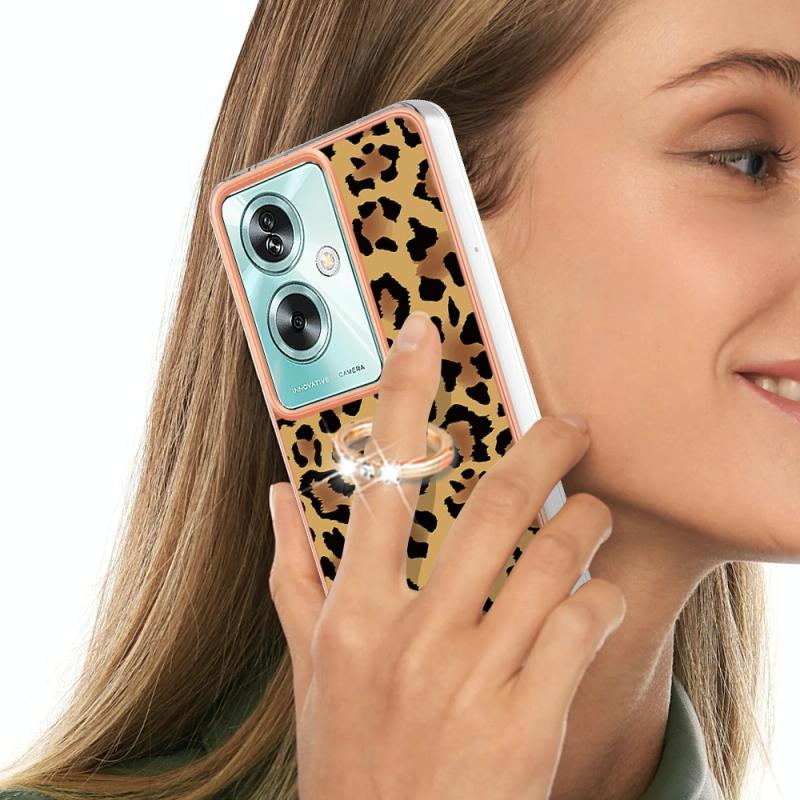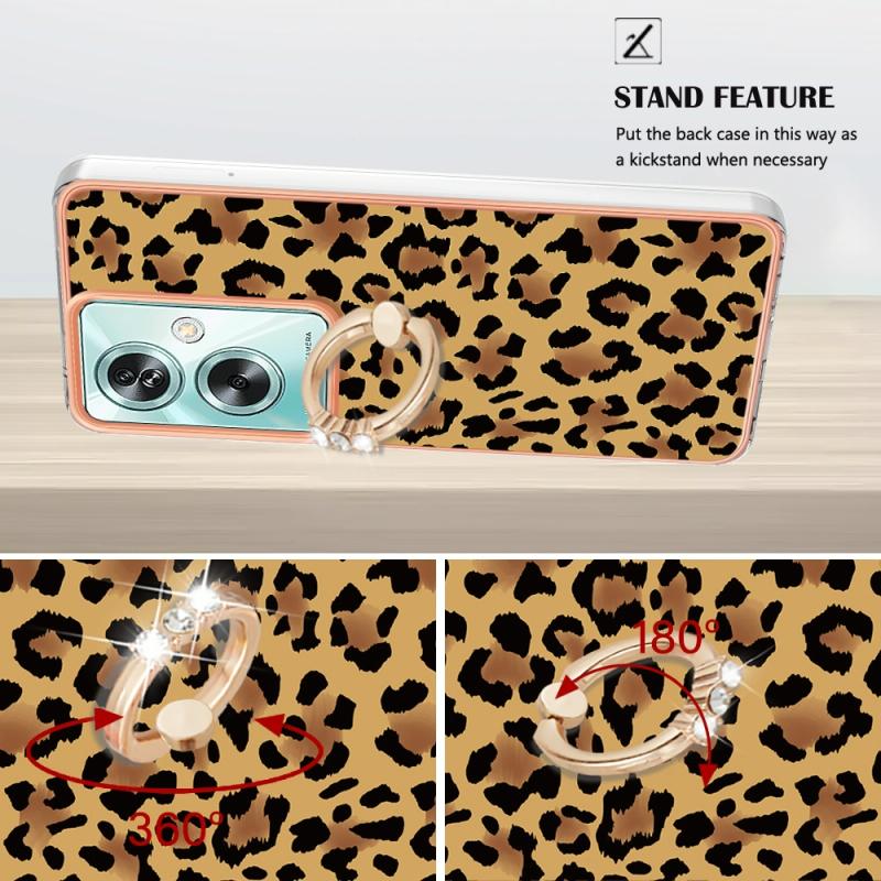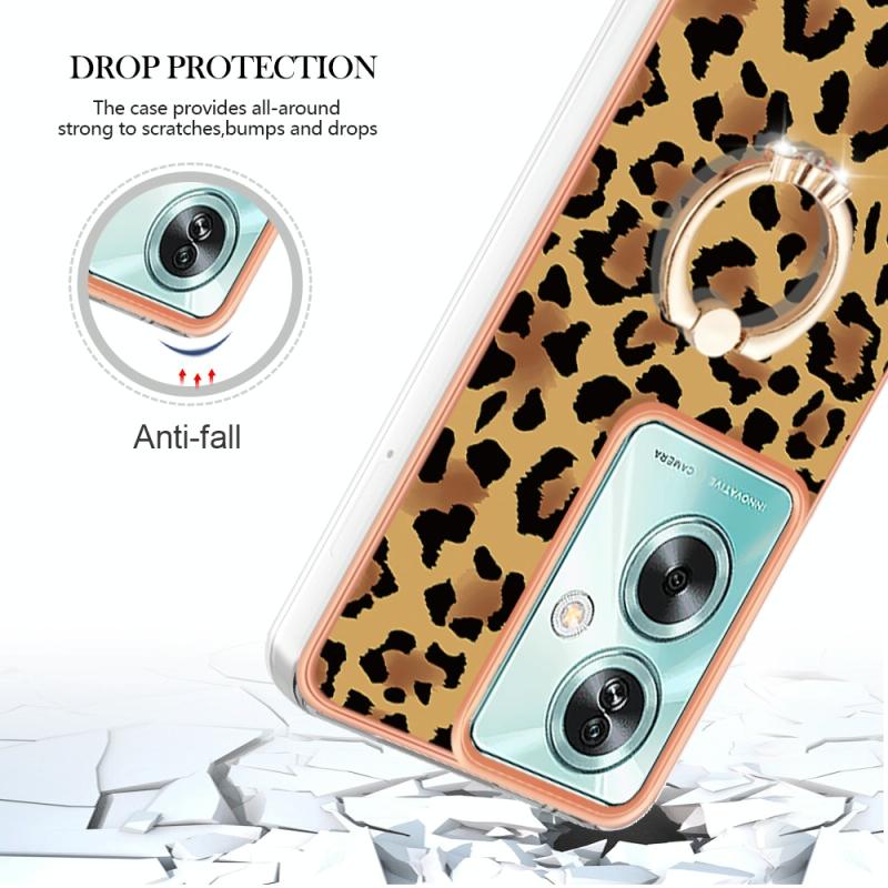 For OPPO A79 5G Global Electroplating Dual-side IMD Phone Case with Ring Holder(Leopard Print)