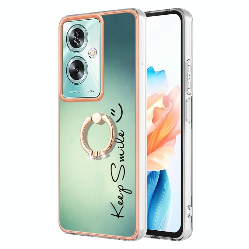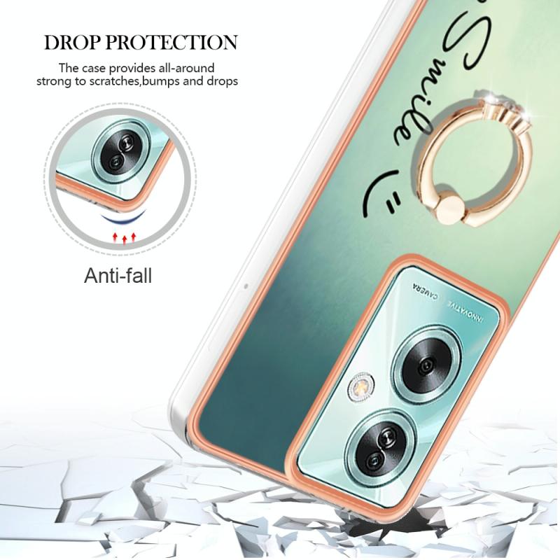 For OPPO A79 5G Global Electroplating Dual-side IMD Phone Case with Ring Holder(Smile)