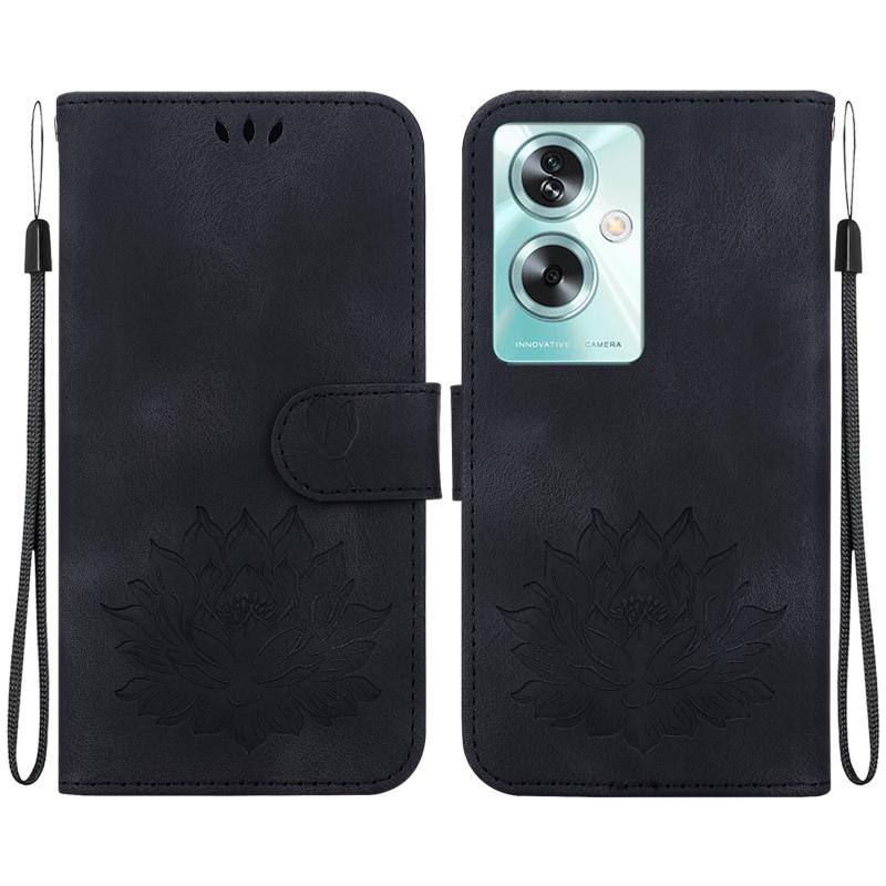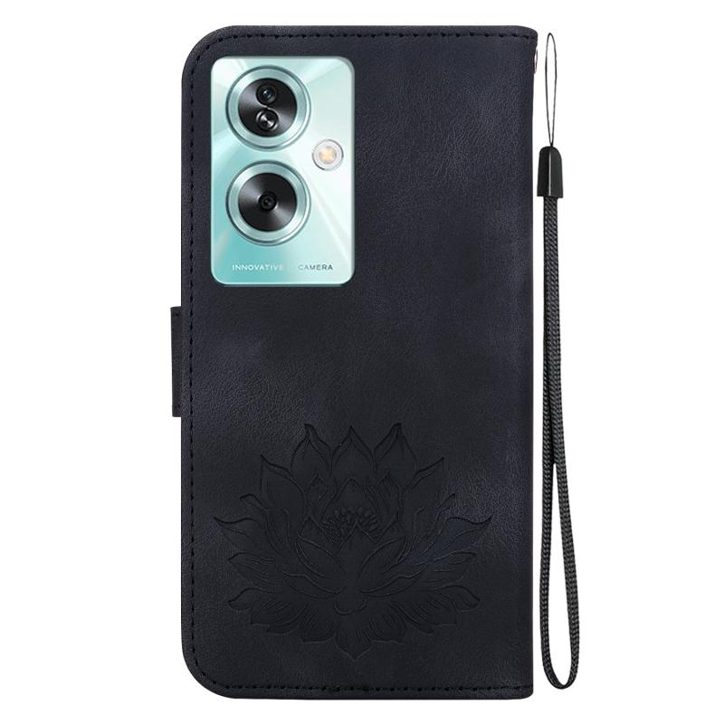 For OPPO A79 5G Global Lotus Embossed Leather Phone Case(Black)
