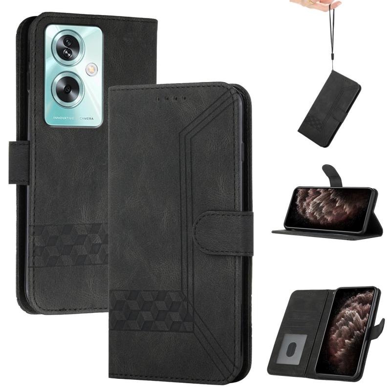 For OPPO A79 Cubic Skin Feel Flip Leather Phone Case(Black)