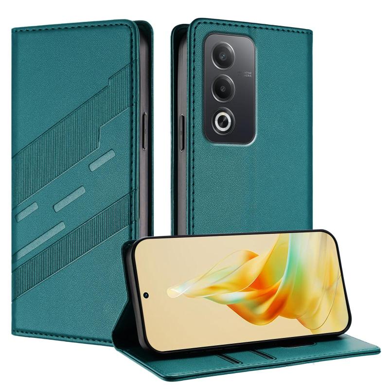 For OPPO A80 5G Embossed Multi-functional Wallet Retro Leather Phone Case(Dark Green)